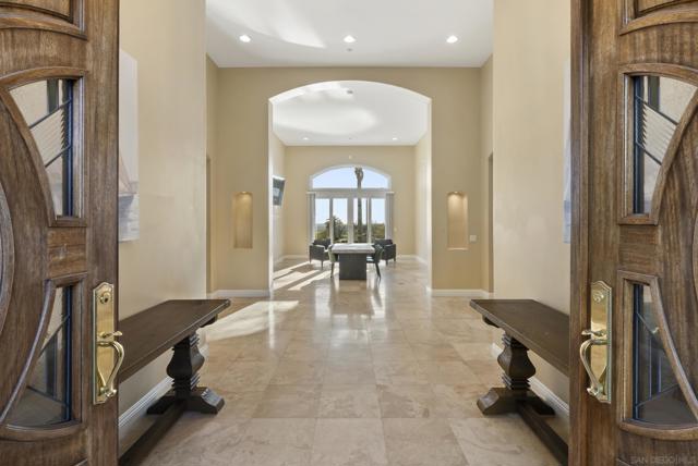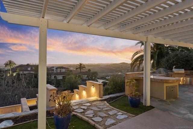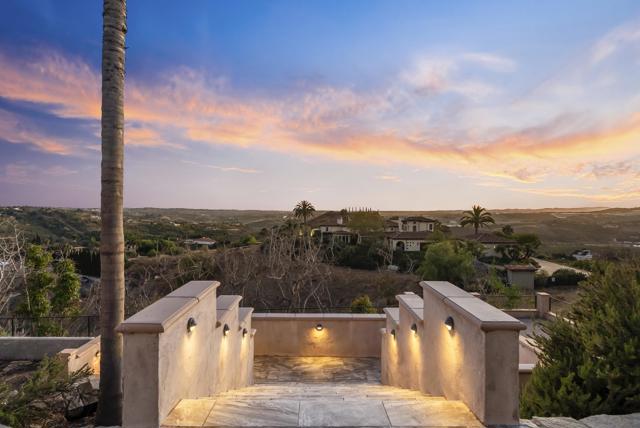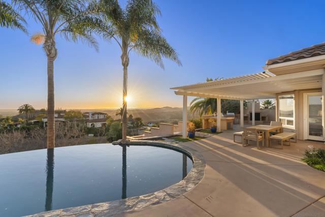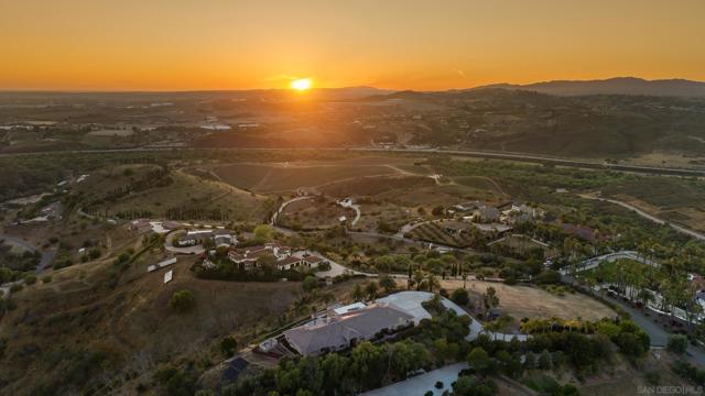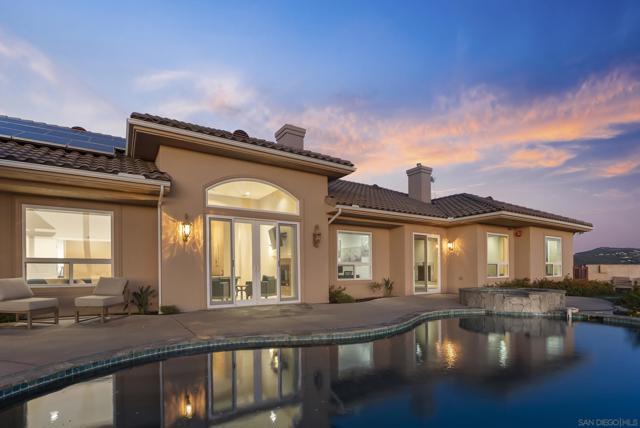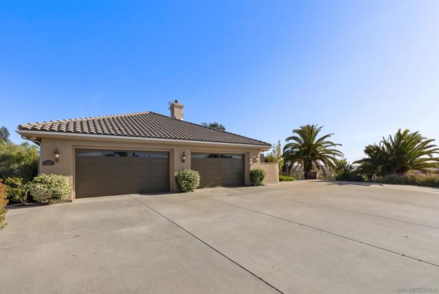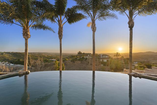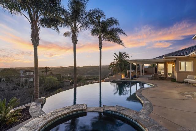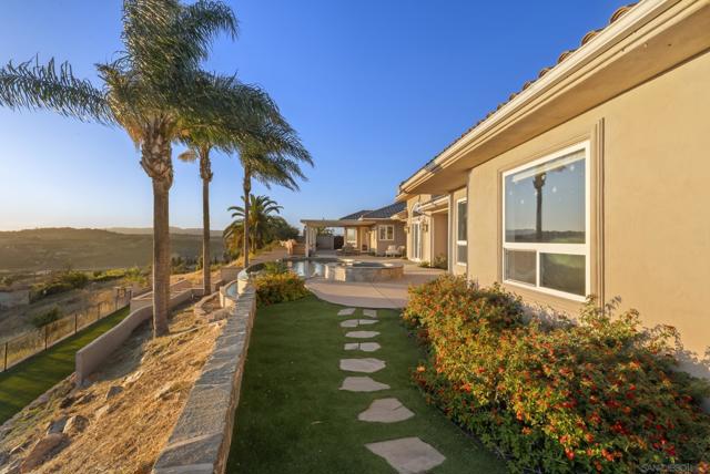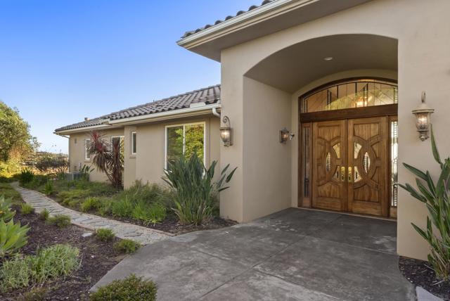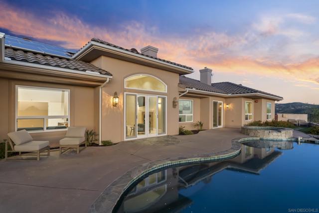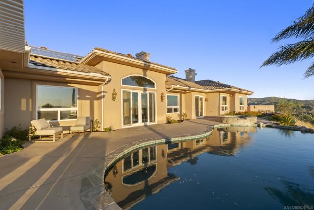 Set on over 5 acres in the hills of Bonsall, this 5,412 sq ft custom single-level estate, built in 2005, captures sweeping 360° views of the San Luis Rey Valley and beyond. A gated, tree-lined drive leads to a thoughtfully designed home featuring 4 bedrooms plus 2 offices, each bedroom with its own en-suite bath, and a spacious primary suite with a walk-in closet and flex space for a gym or lounge. Designed for seamless indoor/outdoor living, the home offers a chef’s kitchen with a large island, three fireplaces, fire sprinklers, an oversized laundry room, and a four-car garage. The resort-style grounds feature an infinity-edge pool and spa, outdoor kitchen, and a dedicated pool bathroom with shower, perfect for entertaining. The property includes a variety of fruit trees, avocado trees, and space to expand into a full avocado grove. Fully paid-off solar, septic, and usable land with room for future expansion complete the offering. Private, scenic living just minutes from the I-15.