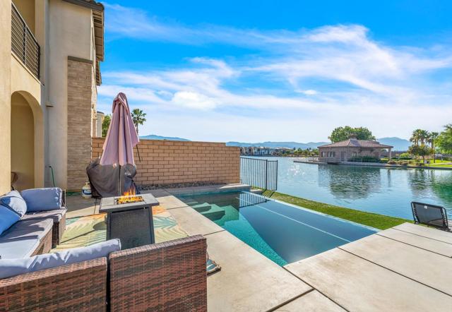 Welcome to lakefront living at its finest in Terra Lago--perfectly positioned on a premium lot with expansive, unobstructed water views.This 4-bedroom, 3-bath home offering over 2,400 sqft features an open-concept layout and seamless indoor-outdoor flow, ideal for both full-time living and short-term rental use. The property's true lakefront positioning provides direct water-facing views from the backyard, creating a highly desirable setting that enhances both lifestyle enjoyment and guest appeal.Designed for resort-style living, the backyard showcases a private infinity pool overlooking the lake, delivering a unique experience that stands out in the marketplace. From sunrise reflections to evening sunsets, the setting offers a sense of openness and privacy rarely found in interior locations. Offered fully furnished, this home is turnkey and ready for immediate use or rental.Located within Terra Lago, a community known for its short-term rental flexibility with no restrictions, this property is well-suited for a range of buyers, including those seeking an income-producing asset, second home, or 1031 exchange opportunity. The functional layout also provides potential for a 5th bedroom conversion, offering added flexibility and future value.Positioned in the Coachella Valley's ''City of Festivals,'' the home is just minutes from Coachella, Stagecoach, Acrisure Arena, golf, and upcoming surf developments, all of which continue to drive strong demand for short-term rentals in the area. For investors, the combination of location, layout, and lakefront exposure presents an opportunity to explore cost segregation strategies to potentially accelerate depreciation and enhance overall tax efficiency.A rare opportunity to own a well-positioned lakefront property that blends lifestyle, income potential, and long-term upside.