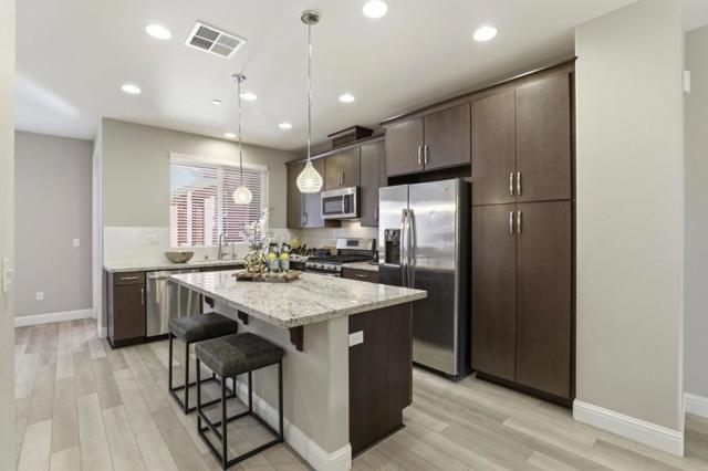 Stunning south-facing luxury townhome built in 2016 by Taylor Morrison, offering abundant natural light and a modern open-concept layout. Ideally located next to guest parking for added convenience. The chefs kitchen features stainless steel appliances, gas cooktop, granite countertops, and a large island with breakfast bar seating, flowing seamlessly into the main living area. Laminate flooring enhances the living room and kitchen with a warm, contemporary feel. A versatile den provides ideal space for a home office, study, or play area. The spacious primary suite includes a walk-in closet, and the home offers 2 full baths and 2 half baths for added functionality. Additional highlights include a side-by-side oversized 2-car attached garage and low HOA of $242/month. Located next to a ~10.6-acre park with open green space, playgrounds, and sports courts. Close to Village Oaks Shopping Center (Target, Safeway, Costco, Starbucks, Lowes) with easy access to Caltrain, Light Rail, and Highways 85, 87, and 101.