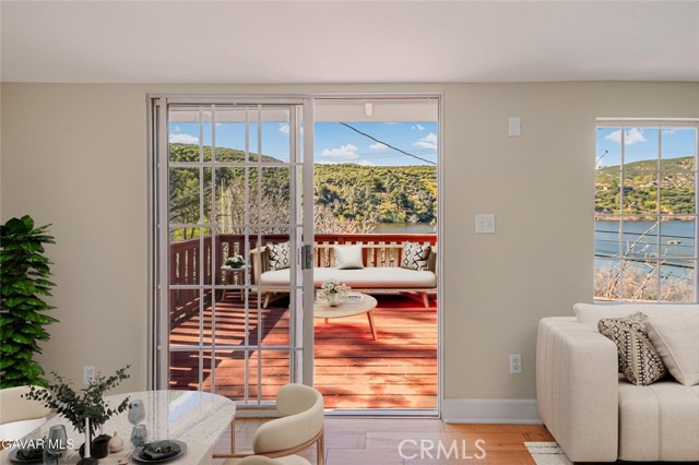 Beautiful lakeside home with jaw-dropping views of the sprawling lake that truly steal the show from the moment you arrive. The entire interior has brand new paint and the exterior has also been freshly painted, giving the property a clean, crisp, move-in ready feel that stands out right away. The kitchen offers great functionality with a brand new stove, updated plumbing fixtures, and a layout that works well for everyday living while still letting the incredible lake setting remain front and center. The flooring has been updated throughout the home, adding to the fresh, renovated feel and making the space feel polished and ready for its next owner. Additional features include upgraded dual-pane windows, updated light fixtures, an interior laundry room, and a private slider leading directly out to the balcony so you can soak in those breathtaking million-dollar lake views any time of day. There is also a walkway that leads to the top of the property where you will find a dedicated view area along with a shed, giving you even more space to take in the scenery. The outdoor areas are all about the lifestyle, with a beautiful red balcony offering plenty of room for entertaining, relaxing, or simply enjoying the peaceful lake views that make this property so special. The backyard and overall setting continue to emphasize what makes this home such a rare offering--the views, the views, and yes, the views again. The location offers the perfect balance of peaceful lakeside living while still being conveniently close to everything, located approximately 25-30 miles from Palmdale (about a 30-minute drive) and roughly 20-25 miles from Santa Clarita (about a 25-30 minute drive), making it ideal for commuters or anyone who wants that getaway feel without being too far out. Come see this one in person and experience the incredible lake views for yourself before someone else beats you to it.