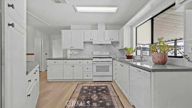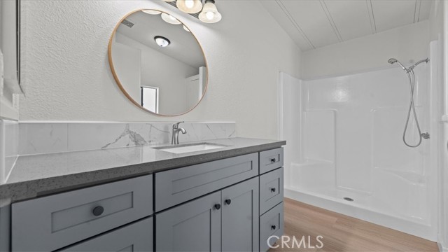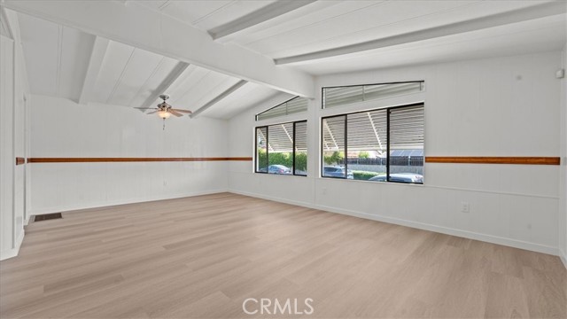 This one will surprise you in the best possible way! Step through the front door and prepare to fall in love with a space that is warm, stylish, and completely move-in ready. As you walk in, you'll be wowed by the vaulted ceilings, exposed beams, and a wide open living space. Natural light pours in through large windows, making every corner of this home feel bright, fresh, and welcoming. The brand new vinyl plank flooring runs throughout the whole home, creating a modern and effortless look. The dreamy kitchen is the kind you actually want to spend time in. It features white solid wood cabinets, new stone countertops, marble-look backsplash, and a breakfast bar that's equally great for morning coffee or evening wine. The master suite is spacious and peaceful, complete with its own private bathroom featuring a new modern grey vanity, stone countertops, designer fixtures, and a walk-in shower. The guest bedroom and second bath are just as sharp: updated, fresh, and ready for whoever walks through the door. Outside, there's a bonus private shed that's just waiting for you to make it your own, whether that's a cozy crafting shed, a creative studio, a home gym, or simply extra storage. This home is freshly painted and also comes with a brand new roof, HVAC system, water heater and electric panel. The big-ticket items are already handled, so you can move in with complete confidence and zero worry. With its beautifully landscaped exterior, covered entry, and undeniable curb appeal, this home is as gorgeous on the outside as it is on the inside. ***Park amenities include community pool, spa, playground and clubhouse***