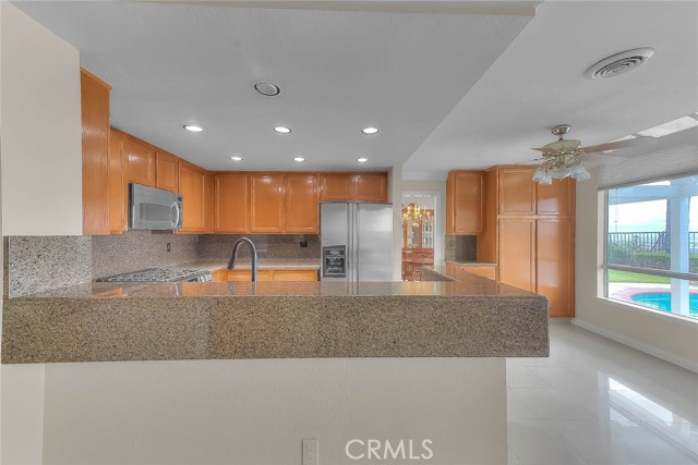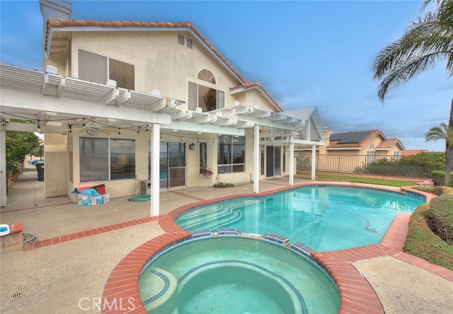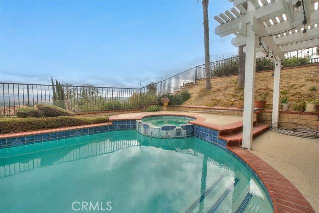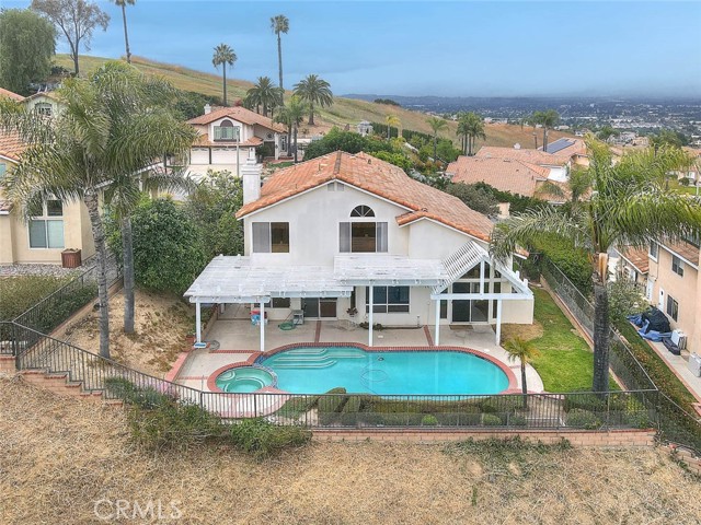 Located in a highly desired North Chino Hills neighborhood, this pool home offers amazing city and mountain views you won't want to miss! Upon entering, you will appreciate the cathedral ceiling and natural light throughout. The formal living and dining room is spacious and perfect for gatherings. The dine-in kitchen overlooks the family room, centered around the warm brick fireplace, making it the perfect space for relaxing. First floor has a bedroom, full bathroom and laundry nook. Upstairs, the large primary suite offers an ensuite bathroom with dual sink vanity, large soaking tub, separate walk-in shower and walk-in cedar lined closet. Upstairs has 2 additional bedrooms, a spacious bonus room / optional 5th bedroom and a full hall bathroom. The large backyard features a sparkling pool and spa with a brand new pool pump & heater, covered patio, built-in BBQ and panoramic city light and mountain views, the perfect spot for entertaining! Centrally located in the Heart of Chino Hills close to all major shopping & dining locations. You don't want to miss the opportunity to make this your dream home!
