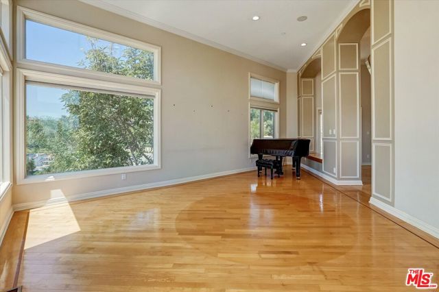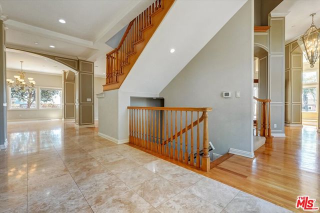 Perched high within Burbank's most coveted hillside enclave, this hillside Estate is defined by Land, Privacy and Unobstructed Panoramic Views. Positioned on an expansive oversized lot, the property commands presence while remaining discreet and secluded. Private gated entry, Exceptional Scale: 5,067 sfqt offers 5 bedrooms, 5.5 bathrooms, The open floor plan is anchored by soaring high ceilings and flooded natural light. The professional-grade chef's kitchen connects seamlessly to the formal dining room, which flows naturally into the living room. An off-wing bonus room, acoustically refined and sun-drenched, lends itself equally to a grand piano, a private reading room. Every bedroom has en suite with bathroom with walk in closet, and each with it's own private exterior door to the wraparound walkway. The primary suite is in a category of its own: a private balcony commanding the full view corridor , a dedicated bar area, an elevated nook over looking the main staircase, and a spa-caliber his-and-her bathroom featuring a rainfall shower and separate soaking tub. The multi-level layout creates a natural and graceful separation of living and private spaces. The ground floor anchors the home with an expansive wine cellar worthy of serious collector, alongside a fully en-suite bedroom. A three-car garage with plenty room to park more cars on the drive way. The backyard, anchored by a substantial retaining wall, offers privacy of outdoor living and potential. Having morning coffee or al fresco dining off the kitchen aside deck with the Views of skyline of Burbank, Glendale and DTLA sweeping views that only few restaurants in this city can rival. Minutes to Warner Bros, Disney, Major Studios , Top-rated Burbank schools, A Rare Opportunity to own one of the Burbank Hill's Estate.