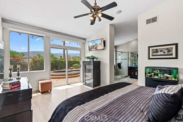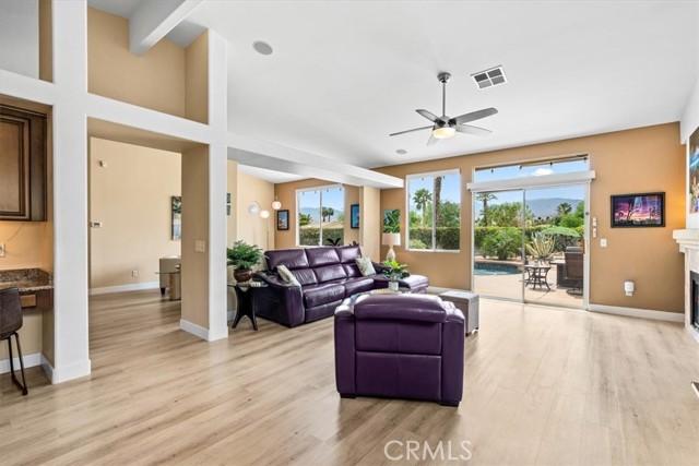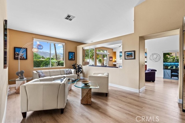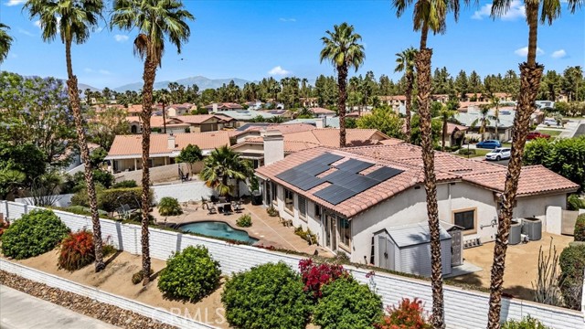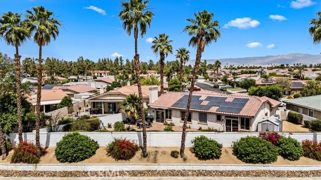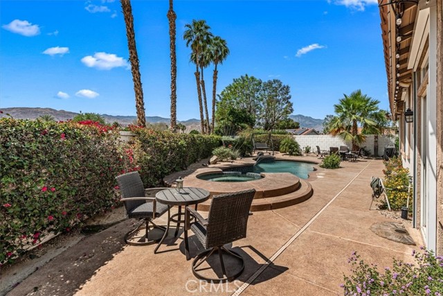 Tucked away at the end of a quiet cul-de-sac in Palm Desert, 40747 Baranda Court presents a rare opportunity to own a private, oversized lot with unobstructed mountain views in one of the area’s most desirable residential settings. Situated on a premium pie-shaped lot with no through traffic, this 4-bedroom, 3-bathroom Palm Desert pool home offers the ideal blend of space, privacy, and upgraded desert living. Inside, the home showcases a series of thoughtful upgrades designed for both style and functionality, including updated flooring, fresh interior paint, recessed lighting, upgraded panel doors, and remodeled kitchen and bathrooms with a clean, timeless aesthetic. Expansive windows bring in abundant natural light, while the flexible floor plan is well-suited for full-time living, a seasonal retreat, or an income-producing investment property. Don't forget about the private guest quarters with private entry and full bath, great for multi generational living. The backyard delivers a true resort-style experience, perfect for enjoying the Coachella Valley lifestyle year-round. Highlights include a saltwater PebbleTec pool and spa, retractable awning, misting system, custom landscape lighting, and multiple outdoor living areas ideal for entertaining, dining, or relaxing while taking in panoramic views of the Santa Rosa and San Jacinto Mountains. Additional high-value upgrades include a fully paid solar system for energy efficiency, upgraded Lennox HVAC system with advanced air purification, insulated garage, newer garage doors, and integrated smart home features for modern convenience and comfort. Ideally located near world-class golf courses, shopping, dining, and top Palm Desert amenities, this move-in-ready home offers a unique combination of location, upgrades, and outdoor living—making it one of the best values currently available in the Palm Desert real estate market.
