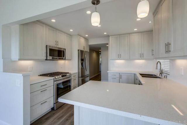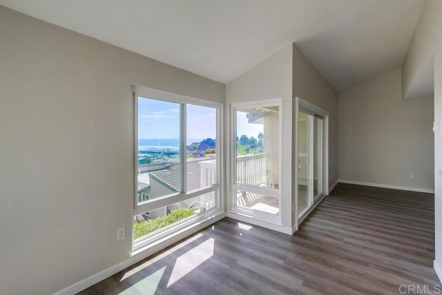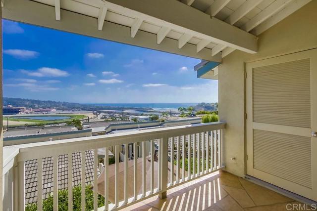 Experience sweeping, unobstructed 180 degree views of the Pacific Ocean and the iconic Del Mar Racetrack from this beautifully reimagined residence. Thoughtfully remodeled throughout, this home blends clean, modern design with effortless coastal living. The gourmet kitchen is outfitted with high end stainless steel appliances and opens seamlessly to the main living space, creating a natural flow for both everyday living and entertaining. Wide plank Denali Oak flooring runs throughout the home, complemented by custom closet systems with double wardrobe shelving and expanded storage. The spacious primary suite offers a true retreat, featuring a refined bath with an oversized walk in shower and elevated finishes. Step outside to a private deck where panoramic ocean and racetrack views take center stage — an ideal setting for morning coffee or evening sunsets. Residents also enjoy access to a beautifully maintained pool just steps from the unit. Additional highlights include 2 covered parking spaces and a dedicated storage cupboard. Perfectly positioned moments from the beach, dining, and the energy of Solana Beach/Del Mar, this home offers a rare combination of style, convenience, and unmatched views.