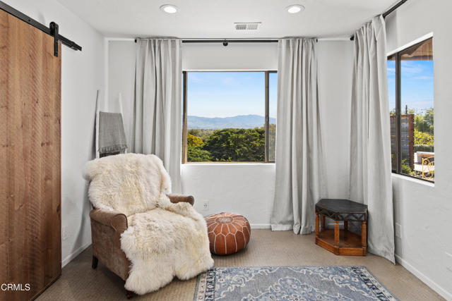 An elevated escape with sweeping views, where comfort and ease feel almost dreamlike. Set on 5+/- acres in the heart of Santa Ynez Valley Wine Country, this modern Spanish-style ranchette rests within the highly sought-after Ballard School District. Gated and framed by natural beauty, a long, scenic drive winds its way to a setting defined by open skies, golden light, and a quietly enchanting sense of arrival. The remodeled 4 bedroom, 3 bath main home blends warmth with contemporary design, creating spaces that feel both inviting and inspired. At its heart, a chef's kitchen opens effortlessly to the outdoors through a full wall of bi-fold glass doors, while a sunlit built-in breakfast banquette invites slow mornings and easy conversation. Vaulted wood-beamed ceilings, polished concrete floors, custom imported wrought iron lighting, and a cozy fireplace lend texture and character, striking a balance between relaxed comfort and understated elegance. Picture windows frame the surrounding landscape, while a separate family room and bonus office offer flexibility for both quiet retreat and lively gatherings. A detached 1 bedroom, 1 bath guest house offers a charming extension of the property, complete with its own private driveway, a two-car garage, and a lower-level studio or office, ideal for visitors, creative pursuits, or additional income potential. Outdoors, the grounds unfold like a hidden world waiting to be experienced. The lower three acres have been thoughtfully groomed into a magical forest of live oaks, where these protected, majestic trees create a canopy of dappled light and winding paths. It's a setting that feels straight out of a storybook, inviting exploration, imagination, and peaceful moments beneath the branches. Nearby, the expansive flat driveway offers a versatile setting for recreation and gathering, with plenty of room for bikes, roller skating, and carefree afternoons. A charming greenhouse, trellised potting shed, and flourishing fruit orchards add to the property's sense of abundance, while a stylish tiny house gym with a deck offers a peaceful space to recharge, all set against a backdrop of breathtaking natural beauty and views of Figueroa Mountain.