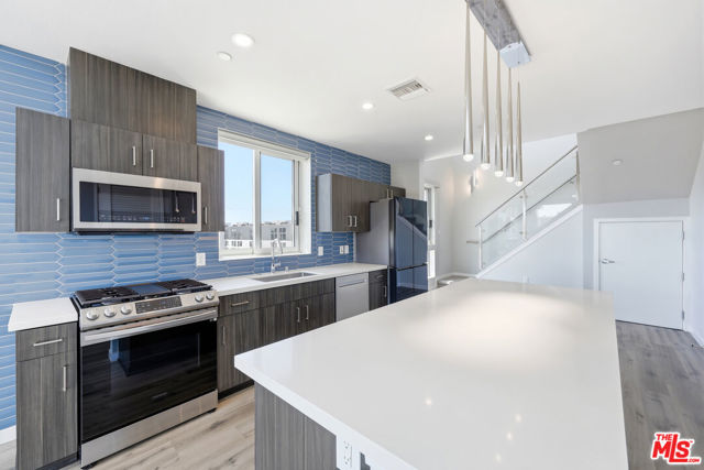 Penthouse Living Elevated. Discover a rare 1,930 sq. ft. two-level penthouse in an intimate 67-unit boutique building, ideally positioned in one of the Westside's most coveted enclaves. Designed for both comfort and impact, this light-filled residence features walls of glass and sweeping views from nearly every room. Perched on the top floor with only one shared wall, the home offers exceptional privacy along with 2 primary suites and 3 bathrooms. The open-concept living and dining areas flow seamlessly to a private balcony, creating effortless indoor-outdoor living. At the heart of the home, the chef's kitchen showcases quartz countertops, new appliances, custom cabinetry, and designer finishes. The main level includes a spacious ensuite bedroom with a beautifully appointed bath and custom walk-in closet, along with a powder room, washer/dryer closet, and abundant storage; ideal for guests or flexible living. Upstairs, the primary suite serves as a true retreat, complemented by a private loft or office with stunning sunset views over the Santa Monica Mountains. The spa-inspired bath features a soaking tub, separate shower, dual quartz vanities, refined finishes, and a custom walk-in closet. Additional highlights include a split HVAC system with independent climate control on each level, automatic window shades, and premium fixtures throughout. Residents enjoy a full suite of amenities, including weekday concierge service, a furnished lobby, bike storage, coffee bar, fitness center, clubhouse, pool, courtyard with modern lounge seating and BBQs, plus complimentary high-speed internet and DirectTV. Located in the heart of Marina del Rey, just moments from Venice Beach, Abbot Kinney, top dining, shopping, Alla Park, and LAX, this home captures the essence of sophisticated coastal living.