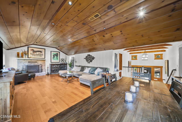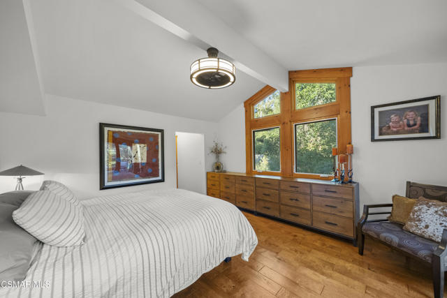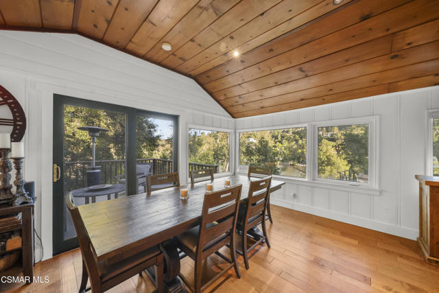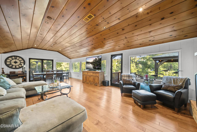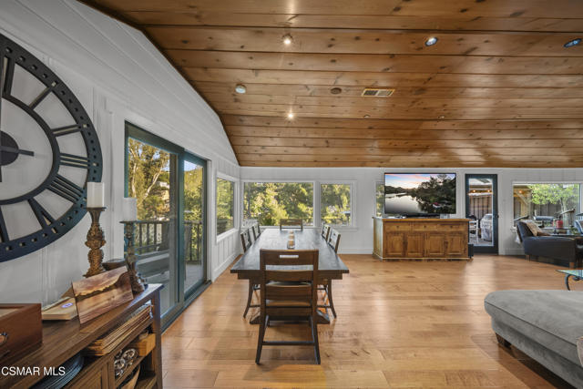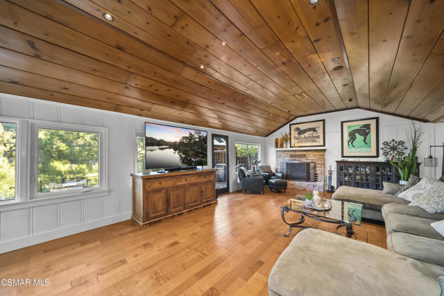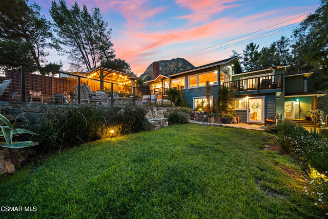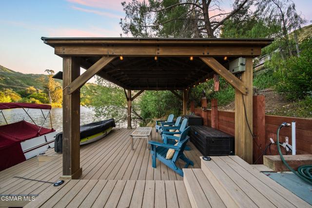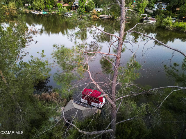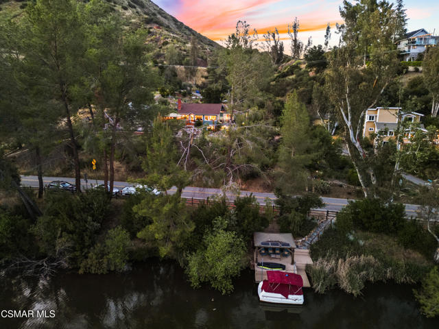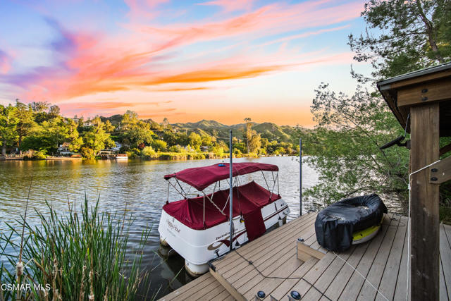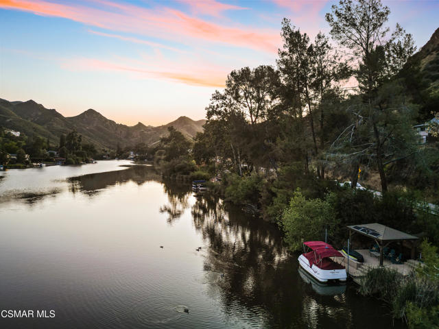 Welcome to this stunning Craftsman-style retreat on the shores of Malibou Lake. A rare combination of timeless charm, modern luxury, and outdoor adventure. Thoughtfully designed for comfort and entertaining, this home offers breathtaking south-facing views of the lake and surrounding mountains from nearly every angle. The chef's kitchen is a showpiece, featuring a large center island, custom Knotty Pine cabinetry, Thermador appliances, a spacious pantry, and a cozy breakfast nook. The main living area showcases newer windows that flood the space with natural light, a classic fireplace, and access to a lovely, shared deck with the primary suite, all overlooking the shimmering lake. With three bedrooms, including a private primary suite on the main level offering a marble bath, soaking tub, and generous walk-in closet, the layout is both functional and inviting. A separate en suite bedroom and bath with a private entrance provides flexibility for guests, while a third bedroom and office share an additional full bath. Beautiful wood flooring runs throughout, complemented by a bonus basement area and a mud/laundry room for convenience. A two-car attached garage is complimented by ample guest parking. Set on nearly half an acre, the outdoor spaces are nothing short of exceptional! Terraced and fenced for maximum use and pet-friendly enjoyment. The covered stone patio is perfect for year-round entertaining with custom fire pit and plenty of seating The private covered boat dock invites endless waterfront fun, from boating and paddle boarding to swimming and fishing. Living at Malibou Lake Mountain Club means access to exclusive amenities including the private lake, pool, tennis and pickle ball courts, clubhouse, and a vibrant community social scene. Just 3 miles from the 101, this property combines peaceful seclusion with quick access to shopping, dining, and thousands of acres of protected open space and parkland. A truly one-of-a-kind lifestyle where every day feels like a getaway and where membership truly has its privileges.