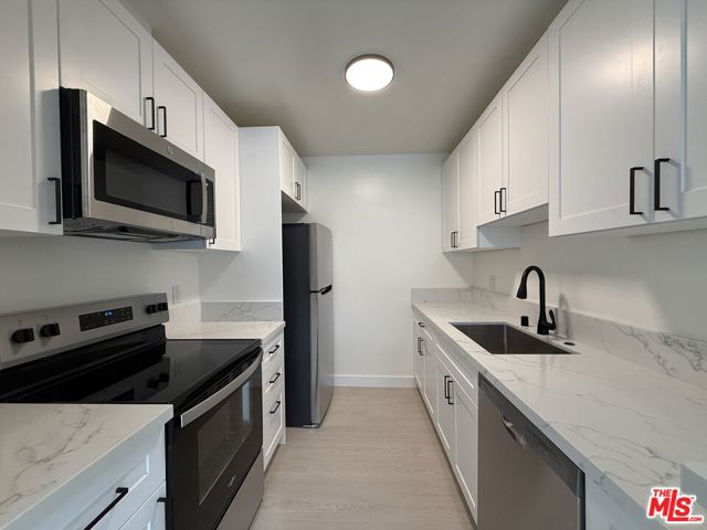 Beautifully renovated second-floor unit offering approximately 1,100 square feet of bright, modern living space. This 2-bedroom, 2-bathroom residence has been thoughtfully updated with contemporary finishes and an open, airy layout. The spacious living area features wide-plank flooring, abundant natural light, and large dual-pane windows. A private balcony extends the living space, perfect for relaxing or enjoying fresh air. The sleek kitchen is equipped with quartz countertops, custom cabinetry, stainless steel appliances, and modern black fixtures, creating a clean and functional cooking space. Both bedrooms are generously sized, with ample closet space and natural light. The bathrooms have been fully remodeled with designer tile, updated vanities, and high-end finishes, offering a spa-like feel. The asking price includes an additional parking fee of $100 per month.