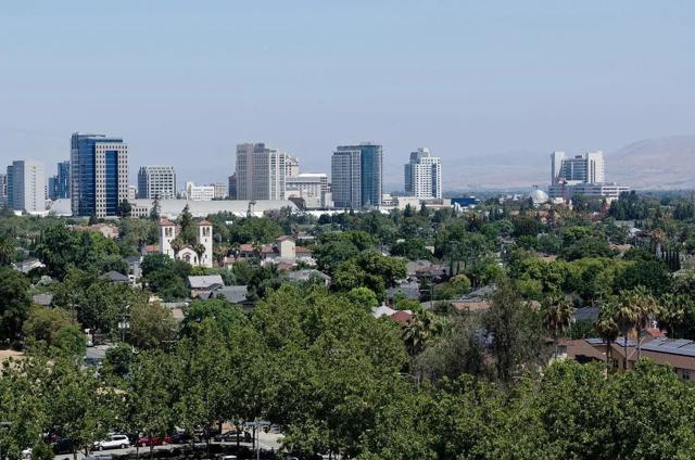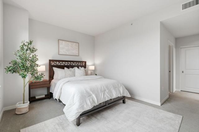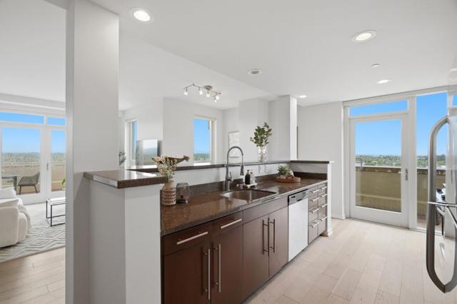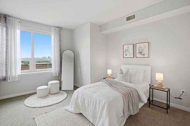 CORNER PENTHOUSE: Unbelievable Views, Location & Value! AN EXCEPTIONAL OPPORTUNITY! Beautifully maintained top floor end-unit condo ideally situated in the heart of San Jose, offering convenient access to Downtown San Jose, Downtown Willow Glen, and major transit options. This light-filled home showcases, luxury vinyl flooring, fresh interior paint, and stainless steel appliances. The open-concept floor plan is enhanced by soaring ceilings and a spacious living area that flows seamlessly to a private balcony with city views perfect for relaxing or entertaining. Additional highlights include the privacy of an end-unit location, water softener system, secured mailboxes, and a gated parking garage. Enjoy resort-style living with outstanding HOA amenities, including an elegant resident's lounge, fully equipped fitness center, dog park, pool, spa, cabanas, and an expansive BBQ and fire pit area with ample seating. HOA dues cover water, garbage, recycling, elevator service, and exterior maintenance. Caltrain, BART, and busses. Includes two assigned parking spaces plus on-site guest parking. You don't want to miss out on this one!
