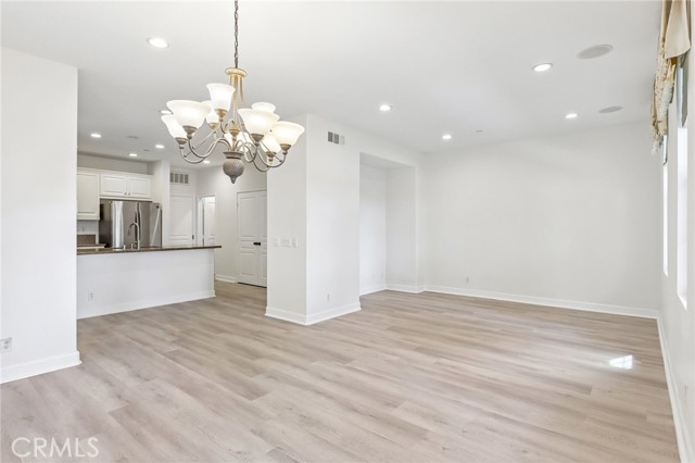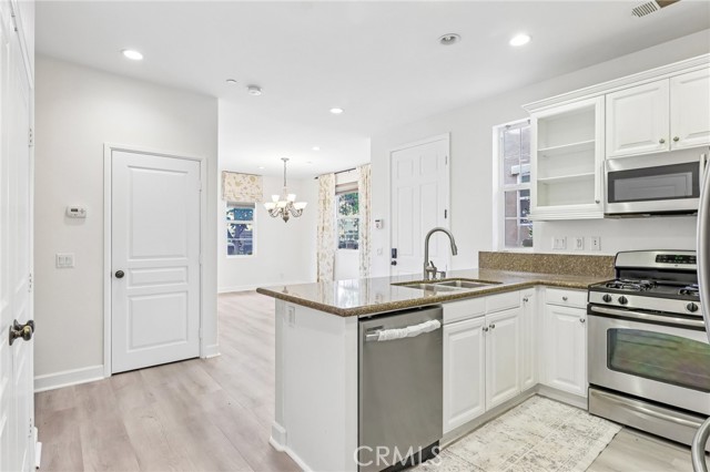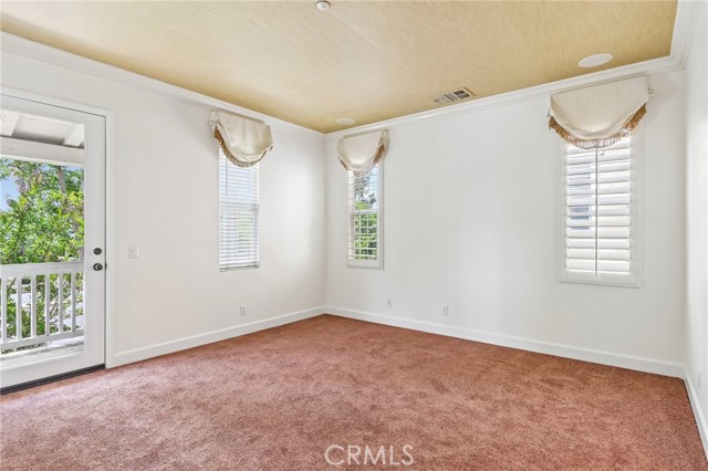 Move-in ready detached home in welcoming gated community in desirable Montclair development. ~~ FORMER MODEL HOME~~ 3 bedrooms / 3.5 bathrooms, 2134 SF built in 2007. This unit is on the outer perimeter and has nice views. Brick paver walkway leads to front entry with private yard. New interior paint, new vinyl plank flooring on the first floor. Living area, kitchen, custom baseboards, custom paneled doors, Lots of natural light and open floor plan with Dining area and Living Room. Open Kitchen with custom white cabinets, granite counters, stainless steel appliances, new dishwasher, recessed lights, and pantry. Downstairs guest bathroom with pedestal sink.. New carpet on stairs. This 3-story homes features white storage cabinets, all bedrooms upstairs, including 2 Secondary Bedrooms, that share the hall bathroom. The Primary Bedroom is large with new plush carpet, crown molding, big walk -in closet, Plantation shutters, glass door to 16 X 5 deck. The Primary bathroom includes dual sinks, white cabinets, large soaking tub, and custom tile floor. The third floor loft which could be used as an additional bedroom, office, or theater room, has a full bathroom. Attached 2-car, all finished garage. LOW HOA! HOA amenities include playground and BBQ area. Close to schools, shopping, and easy access to 10 FWY. Do not miss this opportunity.