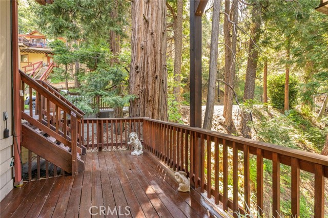 Beautiful Crestline Mountain Home Near Lake Gregory - Built in 2007 and offering 2,268 sq ft of living space, this well-maintained 3-bedroom, 1.5-bath home sits on a 7,713 sq ft lot surrounded by mature cedar, pine, and dogwood trees, creating a peaceful forest setting. This three-level home welcomes you through a main entry landing or the attached 2-car garage. The middle level serves as the heart of the home, featuring a living room with a stunning rock hearth fireplace and soaring ceiling. The gourmet kitchen is designed for both everyday living and entertaining, complete with granite countertops, an eat-at island, walk-in pantry, stainless steel appliances, and warm oak cabinetry. The adjacent dining area opens to a back deck, perfect for enjoying the cool mountain air and serene wooded surroundings. The primary suite is conveniently located on the main level and offers tall ceilings, built-in shelving, a walk-in closet, and an en-suite bathroom with dual sinks, a soaking tub, and a separate walk-in shower. The bottom lower-level features two additional bedrooms, a full bathroom, and a versatile bonus area ideal for an office, workout space, or library. The lower level includes a spacious family room with a second rock fireplace, laundry area, and access to both the back deck and yard, where you’ll find a seasonal creek enhancing the natural charm of the property. An additional approx. 800 sq ft of unfinished space behind the bonus area offers exciting potential to expand the living area. Additional highlights include a whole-house generator for year-round comfort and peace of mind during winter storms. Enjoy an unbeatable location with a walking trail just 50 yards to Lake Gregory, offering fishing, paddle boating, swimming, and hiking. Only minutes to Crestline Village for shopping, dining, bowling, and the local library, and approximately 30 miles to nearby ski resorts. Whether you’re seeking full-time mountain living or a weekend getaway, this beautifully cared-for home offers the perfect blend of comfort, space, and natural beauty.