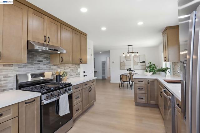 Fully renovated corner-lot home showcasing modern design and quality upgrades throughout. Remodeled kitchen with brand-new stainless steel appliances, sleek finishes, and contemporary style. Updated bath, new flooring, upgraded doors and hardware, and expanded closet space enhance both function and appeal. Dual-pane windows provide energy efficiency and natural light. Major improvements include new HVAC, water heater, and updated electrical panels. Freshly textured walls, designer lighting, new stucco, and interior/exterior paint create a polished look. Epoxy garage floors and newly landscaped grounds complete this move-in-ready property with excellent curb appeal.