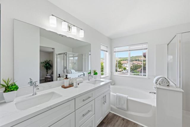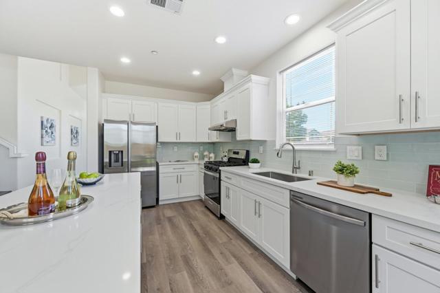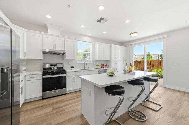 Built in 2000, this stunning 2-story home on a premium corner lot is flooded with natural light. Features 4 beds and 3 full baths, beautifully refreshed with new interior paint and modern SPC flooring throughout for a cohesive feel. The grand entry boasts soaring ceilings and recessed lighting leading to a remodeled open-concept kitchen with brand-new cabinetry, sleek Quartz countertops, glass tile backsplash, and stainless steel appliances (including a premium gas range). The cozy family room with fireplace and breakfast nook is perfect for entertaining. A highly desirable full bedroom and bathroom are located on the first floor - ideal for guests or multi-gen living. Upstairs, the spacious primary suite offers a serene bathroom with deep soaking tub, separate shower, and walk-in closet. Two additional generous-sized bedrooms feature large mirrored closets. Enjoy a private backyard oasis with lush fruit trees and vibrant flowers. Conveniently located near Union City BART, shopping, dining, and Quarry Lakes Regional Park. Easy access to major highways. Don't miss this incredible opportunity. Come and see it today!