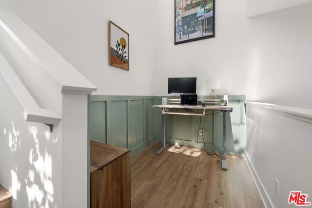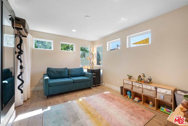 Welcome to this bright and modern 3-level townhome in the gated Expo Walk community, built in 2020. Offering approximately 1,866 sq ft, this home features a private patio and a thoughtfully designed, flexible layout. The entry level includes a spacious bedroom with a full bath and a private two-car side-by-side garage with direct access. Just above, a versatile landing creates the perfect space for a home office or additional lounge area. The top floor is the heart of the home, showcasing an open-concept living, dining, and kitchen space filled with natural light from expansive windows. The kitchen features a large island and flows seamlessly to a generous outdoor deck, ideal for entertaining. This level also includes a powder bath, laundry room, a spacious primary suite with walk-in closet and en-suite bath, and an additional en-suite bedroom. This property has upgrades that include water filtration and softener, electric car charger, UV solar film on windows, and custom storage spaces. Residents enjoy access to community amenities including parks, BBQ areas, and fire pits, all conveniently located near the Expo/Crenshaw Metro Station with easy access to Downtown LA, Santa Monica, and LAX.