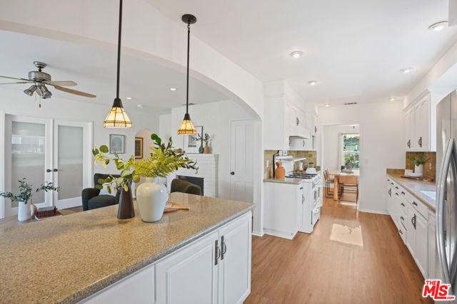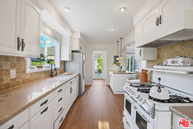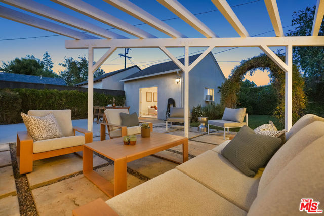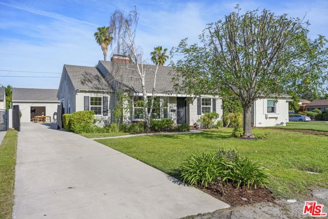 Style, form and function unite in this exceptionally charming 1940s California Storybook Traditional, expanded and updated with the design and amenities ideally suited for today's contemporary lifestyle. Crowning an expansive 8,100+ sq.ft. lot the home resides in diving harmony with its organic environment in one of the most sought after neighborhoods in Valley Glen: An idyllic, vibrant tree lined community and wonderful place to call home! Hip, relaxed, refined with an inviting sense of scale, the thoughtfully designed home offers a flexible floor plan that provides gracious transition from room to room ideal for easy, relaxed living and entertaining. Freshly painted interiors are suffused in an abundance of natural light from expansive use of windows and glass. Newly refinished wood floors grace the living areas. Recessed lighting glows throughout the home. Baths feature fine lighting, fixtures and finishes. The open kitchen is optimally designed for the at home chef and features abundant wood cabinetry, breakfast bar and classic, vintage O'keefe and Merritt 6-burner range. Opening to the family room and adjoining the dining room, it's the perfect gathering space for dining with friends and family. A continuum of glass atrium doors bring the outdoors in and give way to a sprawling grassy back lawn and expansive dining and lounging patio perfect for the Southern California lifestyle of al fresco leisure and endless summer BBQs. Highlights include a fantastic 563 sq.ft. detached multi-use flex space with attached bonus/storage room offering a myriad of possibilities! Three bedrooms including a lux primary suite with soaring cathedral ceilings and bay window with verdant views of the backyard round out the comfortable accommodations for family and guests. Set within a quiet, established neighborhood, the home delivers a compelling blend of charm, functionality, and lifestyle and is the place where you want to live. Welcome!