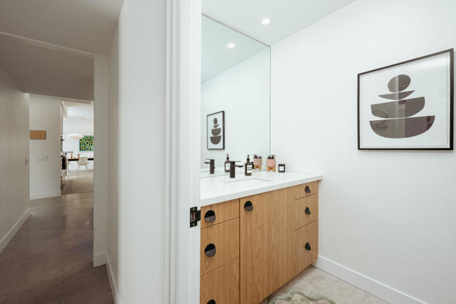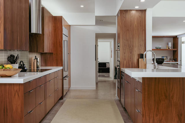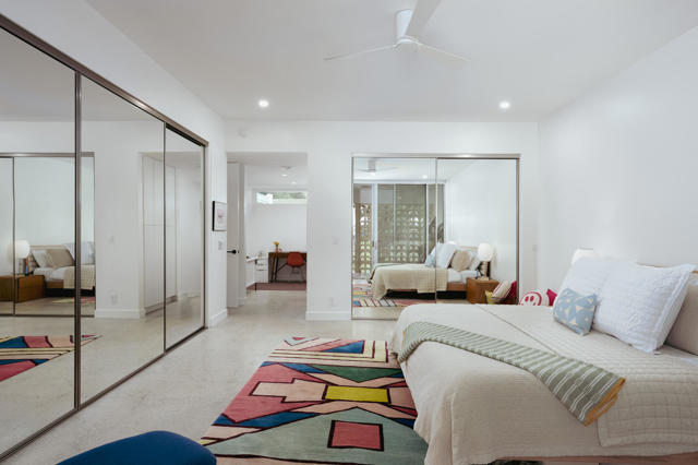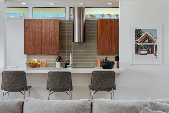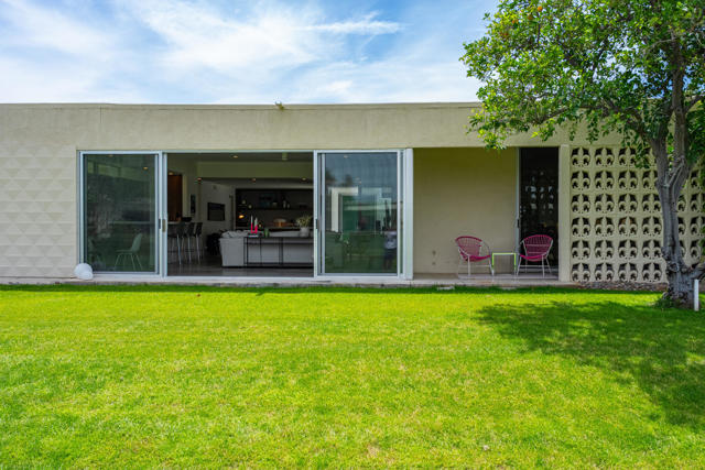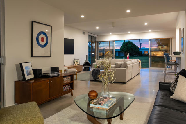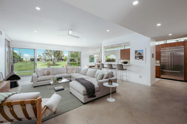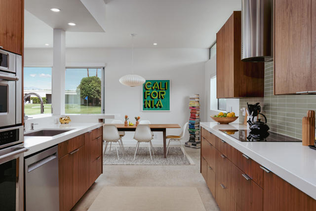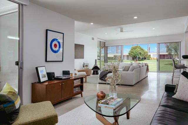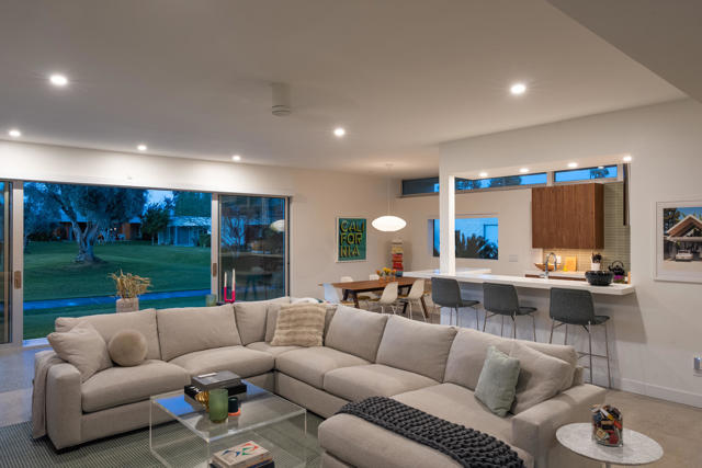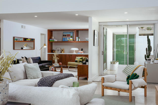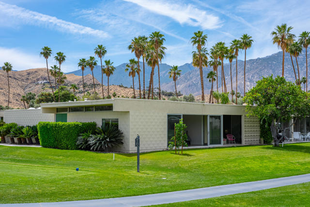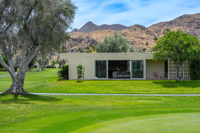 Set within the architecturally significant Seven Lakes Golf & Country Club in highly coveted South Palm Springs, this exquisitely reimagined 2BD, 2BA + Den residence captures the essence of elevated desert living.Perfectly positioned along the second green and third tee box of the celebrated Ted Robinson-designed course, the home is surrounded by expansive greenbelts and framed by breathtaking mountain vistas, offering a rare sense of serenity, privacy, and natural light.Meticulously updated while honoring its mid-century architectural heritage, the residence showcases exceptional craftsmanship and a refined, design-forward aesthetic. Every element has been thoughtfully curated to strike a seamless balance between sophistication and comfort, resulting in a timeless and highly livable environment. Thoughtfully upgraded throughout, the home features whole-house re-plumbing and sewer line replacement, a water filtration system, dual-pane windows, and an updated AC circuit breaker. Interiors are elevated with custom cabinetry, a built-in bar, professional-grade appliances, and beautifully renovated kitchen and baths. Electronic custom shades and additional enhancements complete this refined offering.Seamless indoor-outdoor living unfolds through a generous private courtyard--an inviting sanctuary designed for effortless, year-round entertaining. Ideal for intimate dining, relaxed lounging, and evenings beneath the desert sky, this space embodies the Palm Springs lifestyle at its finest.Beyond the 24-hour guard-gated entrance, Seven Lakes--revered as 'The Gem of the Desert'--offers an exceptional lifestyle anchored by its Ted Robinson-designed 18-hole executive golf course. Residents enjoy 15 pools and spas with pool houses, tennis courts, and the iconic William F. Cody-designed clubhouse, complete with formal dining, a casual cocktail lounge, and a scenic terrace overlooking the signature waterfall feature.This is quintessential Palm Springs living--architecturally significant, impeccably renovated, and surrounded by extraordinary beauty.