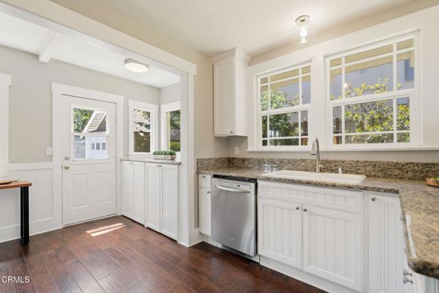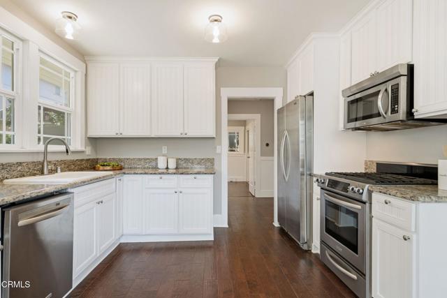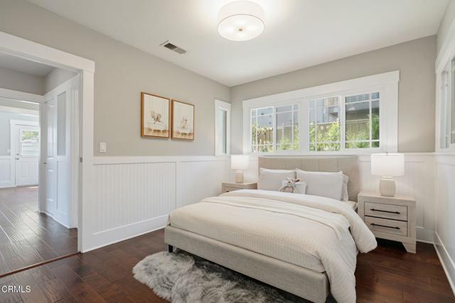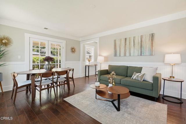 Welcome to 427 Waldo Ave, a charming Craftsman-style bungalow just north of Pasadena's sought-after Madison Heights neighborhood. Set on a tree-lined street across from Mayfield Junior School, the home welcomes you with a manicured front lawn and a winding path to the front door. Inside, hardwood floors and classic wainscoting add warmth and character throughout. The living room features an exposed brick fireplace and French doors that open to a side patio, creating an easy flow for relaxing or spending time with friends. The dining area connects directly to the kitchen, where wood cabinetry, stainless steel appliances, and a practical layout make everyday cooking simple. Another set of French doors brings in natural light and fresh air. The home offers two bright bedrooms, thoughtfully set apart from the main living spaces. Both include wainscoting and share a full bathroom. Outside, the partially covered side patio extends your living space, while the fenced backyard offers room to garden, play, or enjoy time outdoors. A detached garage adds flexibility and could be converted into a home office, studio, or bonus space. With Whole Foods just a block away and Old Town Pasadena's shops and restaurants only minutes from your door, this home offers comfort, convenience, and a great opportunity to put down roots in a fantastic neighborhood.