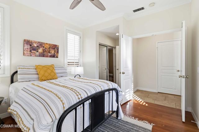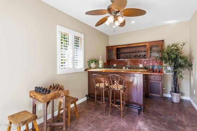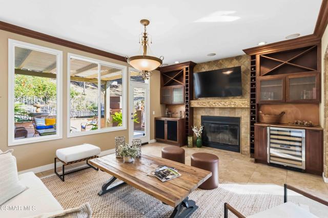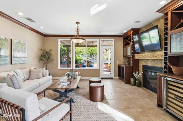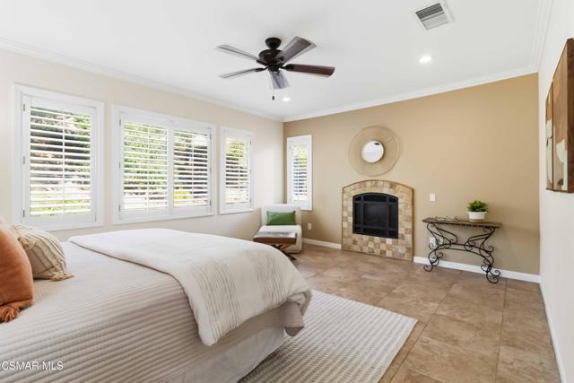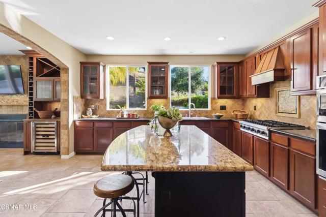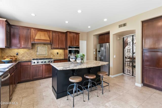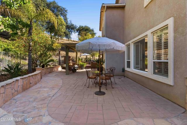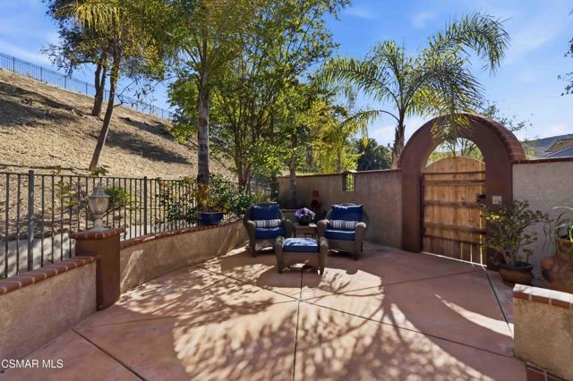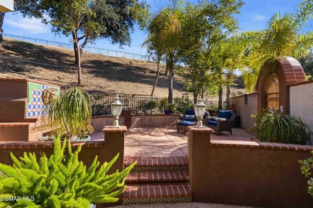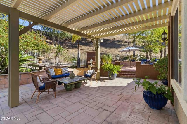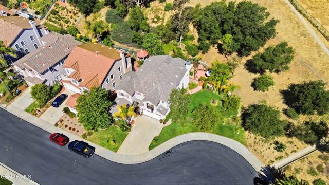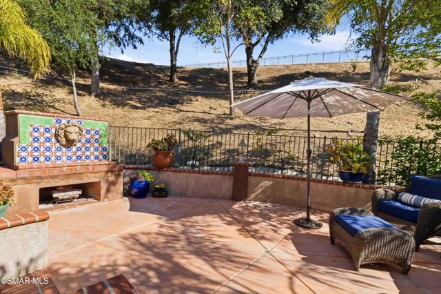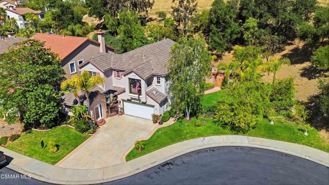 Welcome to an exceptional residence in the prestigious guard-gated Long Canyon Estates of Wood Ranch in Simi Valley--where privacy, space, and versatility define the lifestyle. With 4 community pools, paths, and tree lined streets where life slows down, this neighborhood is a refuge from hectic urban life.Positioned at the end of a private cul-de-sac street with an expansive 27,000+ sq ft lot, this property offers a rare and highly desirable setting--with no close neighbor on one side, creating added privacy, openness, and a true sense of retreat.This spacious two-story home features 5 bedrooms and 5 bathrooms with a two story, light-filled entry and sweeping staircase with custom tilework. The large kitchen and great room serve as the heart of the home, offering an open, functional layout ideal for both everyday living and entertaining. There are two interior fireplaces that add warmth and charm, including one in the primary suite for a cozy, elevated retreat.The third fireplace is in the backyard and is wood-burning.A standout feature is the separate-entry apartment--providing exceptional income-producing potential or the perfect setup for multi-generational living, long-term guests, or a private office. This flexible space significantly enhances both the usability and long-term value of the property.Recent upgrades include fresh interior paint, two new AC units, new appliances, and new carpet in 3 of the upper-level bedrooms, delivering modern comfort to this move-in-ready home.The outdoor spaces are designed for both beauty and ease. Beyond the kitchen-great room is a low-maintenance rear yard with extensive hardscaping and views to the hillside maintained by the HOA. The setting offers privacy and tranquility with a lovely fountain as well as a raised seating area that includes the third wood-burning fireplace. Step through the Spanish arch to an adjacent ''secret garden,'' complete with another tranquil, bubbling fountain, grassy expanse and separate gate to the front of the house. This property offers the ideal setting for relaxing evenings and entertaining under the stars.Residents enjoy close proximity to one of the community pools located just at the end of the street, along with access to three additional pools, spas, and clubhouses within this secure, guard-gated community. The neighborhood is known for its tree-lined streets, scenic walking trails, and peaceful natural surroundings, with protected open space and recreational areas nearby.Located in one of Simi Valley's most coveted areas and nestled near protected open space. this area is recognized as one of the safest pockets in Southern California. The development is near the Ronald Reagan Presidential Library and surrounded by breathtaking natural beauty. There are endless opportunities for outdoor activities such as mountain biking and hiking with numerous, protected trails off Long Canyon Road.Combining a premium cul-de-sac location, oversized lot, income-generating potential, and thoughtful updates, this property presents a rare opportunity for buyers seeking comfort, flexibility, and long-term value.