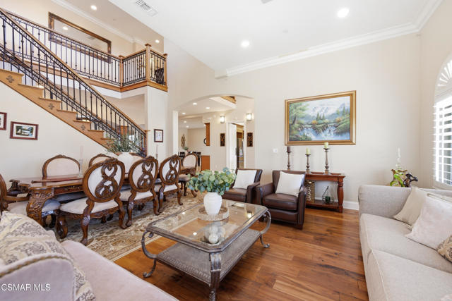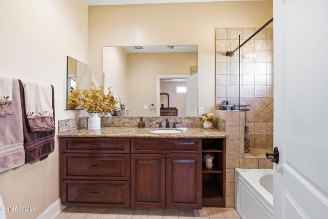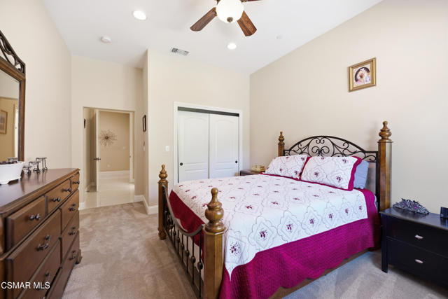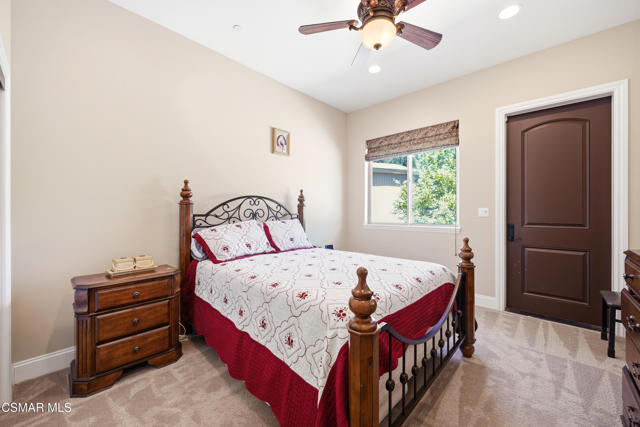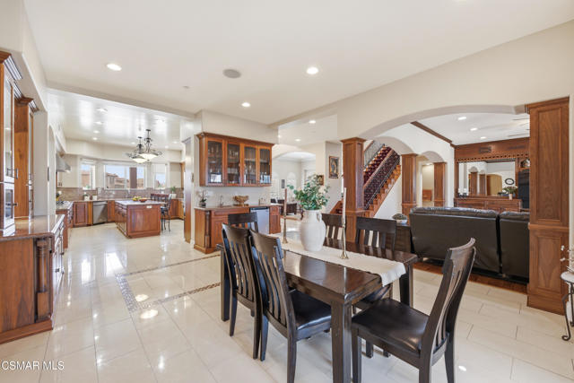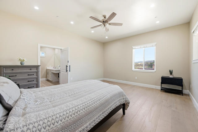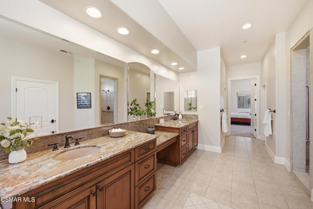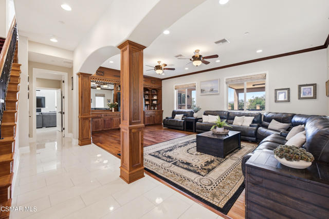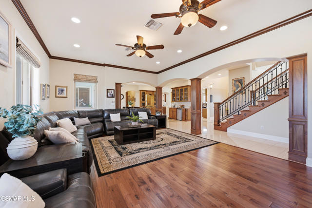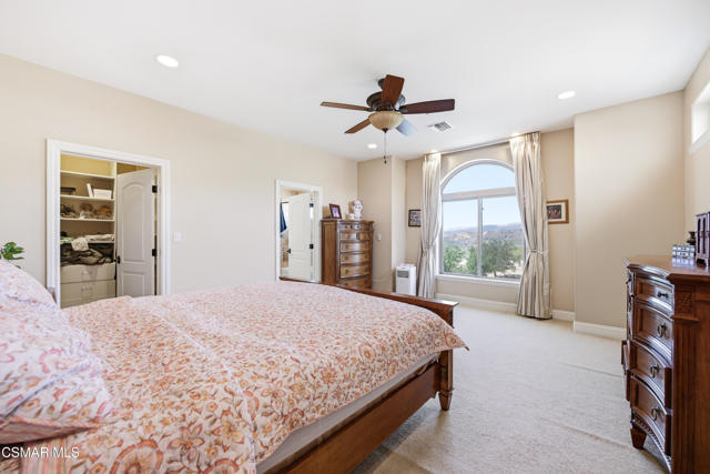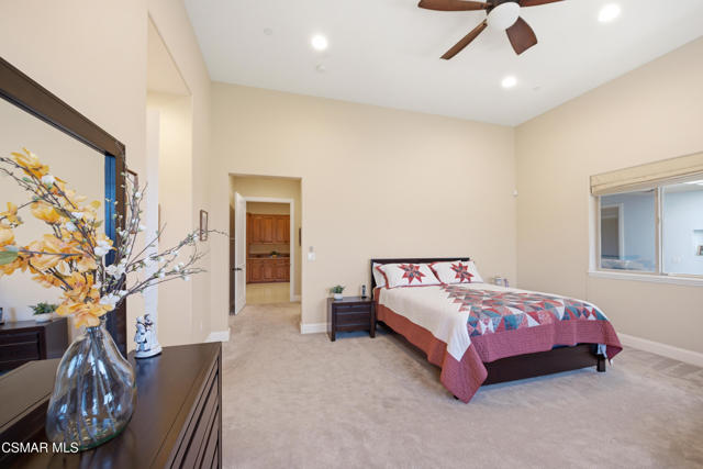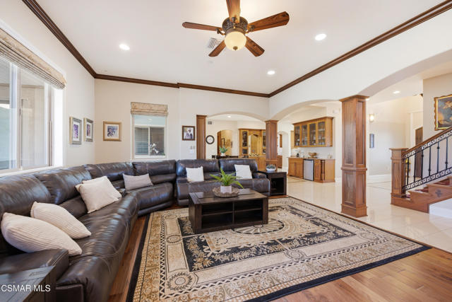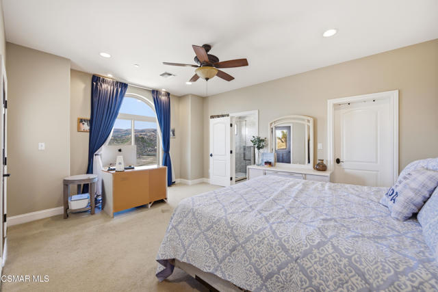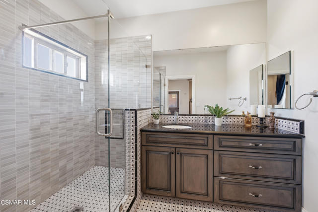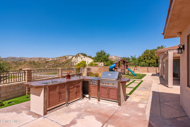 Custom Estate in Big Sky offers nearly 7,000 SF of living space, including 6 bedrooms + office, 6 bathrooms, and a private ADU. Ideally located at the end of a cul-de-sac with unobstructed mountain views!! A rare multi-generational opportunity, this home features a downstairs primary suite, a guest bedroom with adjacent full bath and private entrance, plus a fully equipped guest house. The main residence spans 5,994 SF, complemented by a 998 SF guest house with 1 Bed and 1 Bath. A grand entry welcomes you with custom double glass doors, porcelain tile, engineered hardwood flooring, and a wood and iron staircase. Architectural details include columns, crown molding, and a built-in entertainment center. Formal living and dining rooms with plantation shutters flow seamlessly into the family room and secondary dining area, all enhanced by scenic views. Let's not forget about the 330 SF sunroom with wall-to-wall windows and skylights adding additional flexible living space. The chef's kitchen is designed for both function and entertaining, featuring a large island, granite countertops, stainless steel appliances, double ovens, a swing door, and a walk-in pantry with glass door. The main level includes 2 bedrooms, an office, and 2.5 baths, including the primary suite with backyard views, dual walk-in closets, dual vanities, and a large stone-tiled shower with bench. All bathrooms in the main home are upgraded with granite countertops, wood vanities, and custom tile work. Upstairs offers 4 additional bedrooms, 3 full bathrooms, a loft, and 2 balconies. Highlights include a large bonus room/bedroom with balcony access, two en-suite bedrooms with mountain views (one with balcony), and an additional bedroom with a nearby hall bath. A walkable, drywalled attic with built-in storage and attic fans adds valuable storage space. Built in 2022 The private guest house (ADU) is situated in its own wing and designed for comfort and accessibility, featuring wide entryways, engineered hardwood floors, Milgard windows, a fireplace, full kitchen with quartz countertops and shaker cabinetry, living and dining areas, a full-size laundry, and a primary suite with walk-in closet and spa-like bath. Multiple access points include a private exterior entrance, backyard access, and interior connection to the main home, with potential to add a staircase to the upstairs bonus room. The outdoor space offers a tranquil, private setting with mountain views, built-in BBQ, firepit, artificial turf, drought-tolerant landscaping, a grassy area, lemon, lime, and orange trees on a drip system. Built with quality and durability in mind, features include wide/deep footings, thick slab, steel beams and posts, Milgard windows with wood casings, 8-foot doors, crown molding, and recessed lighting throughout. Additional upgrades include a fully paid 17kW Tesla solar system (2023), 3 tankless water heaters, 3 HVAC systems, security cameras, and exterior lighting. Additional amenities include a 3-car garage, RV access with side shed, and a large driveway. The Big Sky community offers access to parks, hiking and biking trails, a nearby dog park, and convenient proximity to shopping, dining, hospitals, and the 118 and 23 freeways.