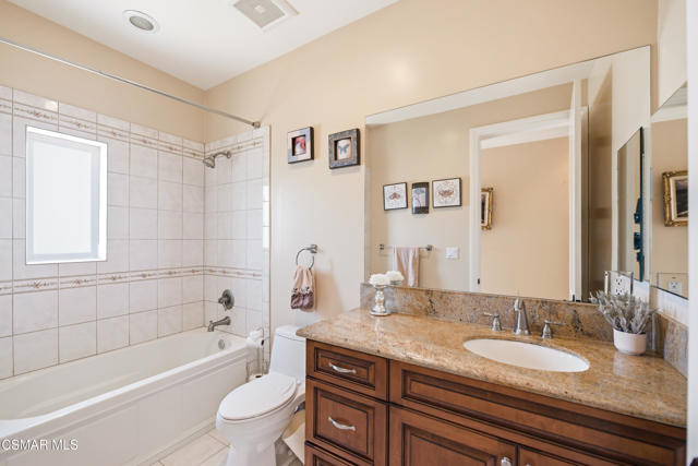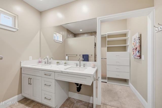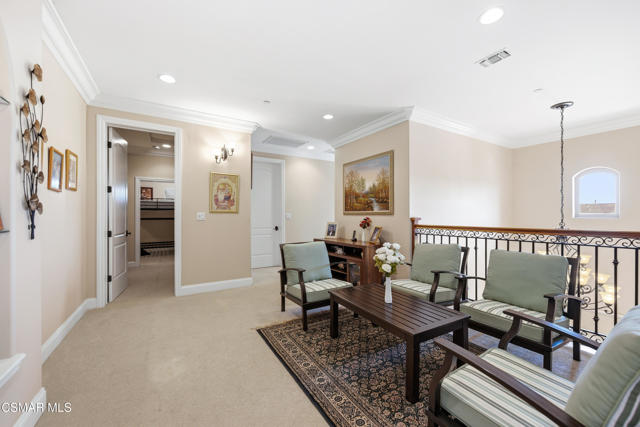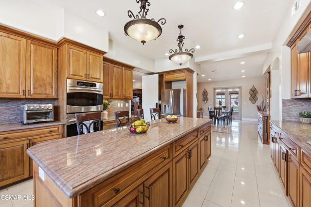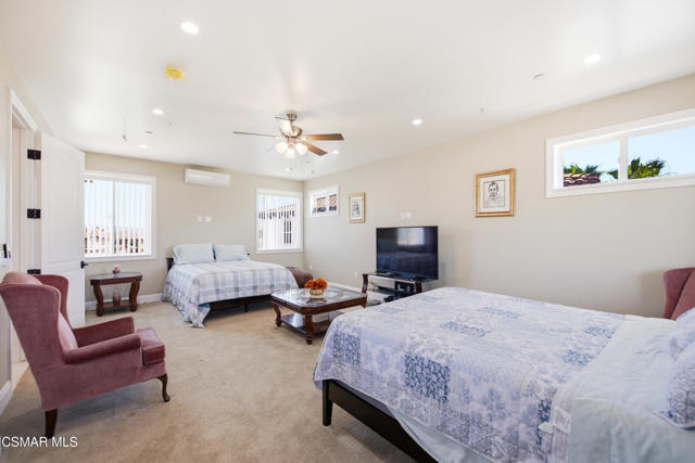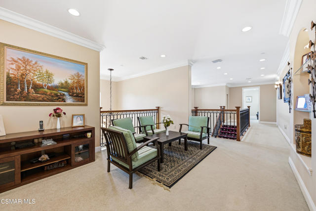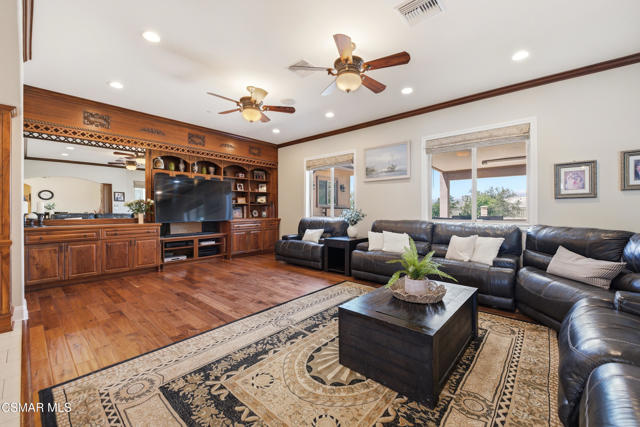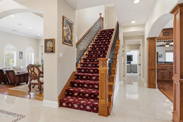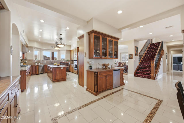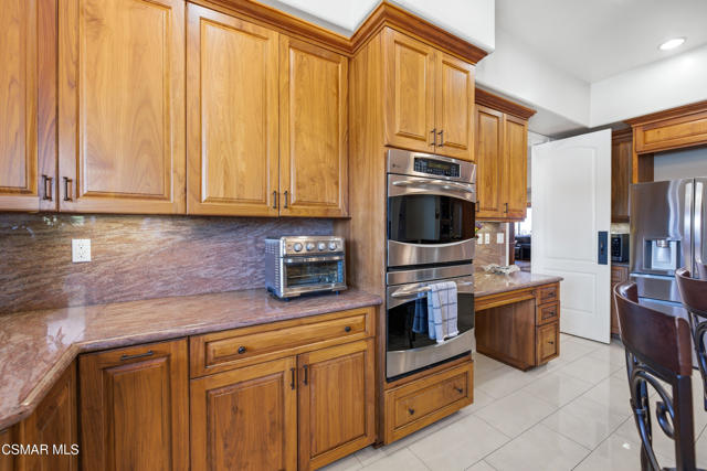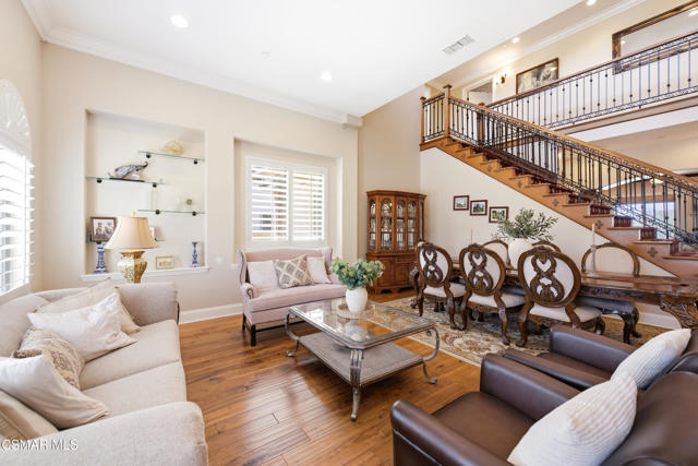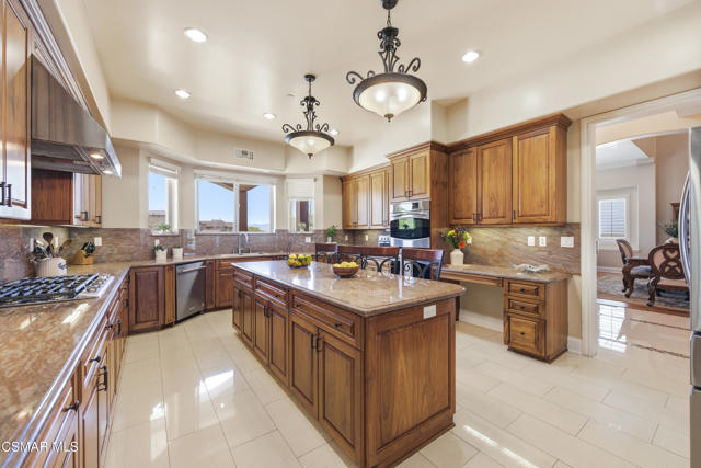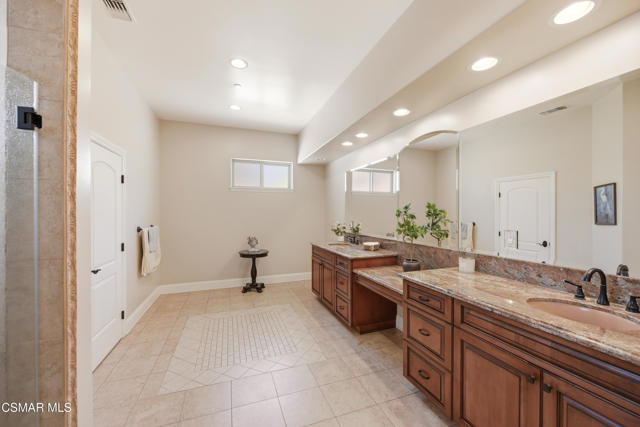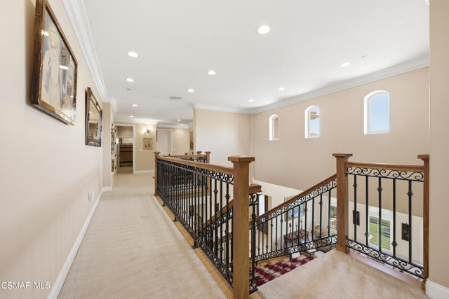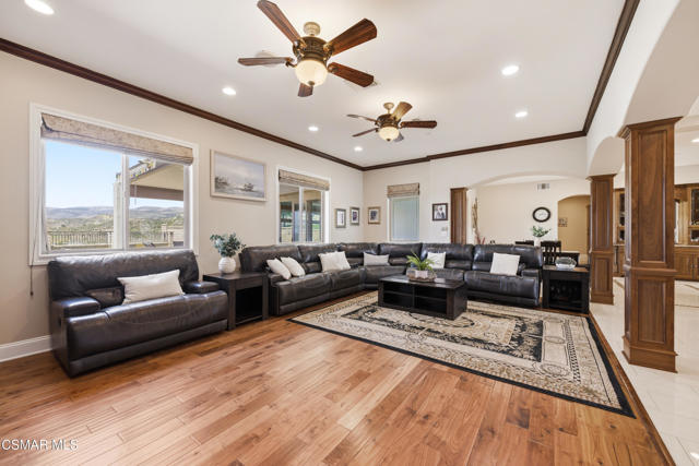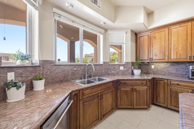 Custom Estate in Big Sky offers nearly 7,000 SF of living space, including 6 bedrooms + office, 6 bathrooms, and a private ADU. Ideally located at the end of a cul-de-sac with unobstructed mountain views!! A rare multi-generational opportunity, this home features a downstairs primary suite, a guest bedroom with adjacent full bath and private entrance, plus a fully equipped guest house. The main residence spans 5,994 SF, complemented by a 998 SF guest house with 1 Bed and 1 Bath. A grand entry welcomes you with custom double glass doors, porcelain tile, engineered hardwood flooring, and a wood and iron staircase. Architectural details include columns, crown molding, and a built-in entertainment center. Formal living and dining rooms with plantation shutters flow seamlessly into the family room and secondary dining area, all enhanced by scenic views. Let's not forget about the 330 SF sunroom with wall-to-wall windows and skylights adding additional flexible living space. The chef's kitchen is designed for both function and entertaining, featuring a large island, granite countertops, stainless steel appliances, double ovens, a swing door, and a walk-in pantry with glass door. The main level includes 2 bedrooms, an office, and 2.5 baths, including the primary suite with backyard views, dual walk-in closets, dual vanities, and a large stone-tiled shower with bench. All bathrooms in the main home are upgraded with granite countertops, wood vanities, and custom tile work. Upstairs offers 4 additional bedrooms, 3 full bathrooms, a loft, and 2 balconies. Highlights include a large bonus room/bedroom with balcony access, two en-suite bedrooms with mountain views (one with balcony), and an additional bedroom with a nearby hall bath. A walkable, drywalled attic with built-in storage and attic fans adds valuable storage space. Built in 2022 The private guest house (ADU) is situated in its own wing and designed for comfort and accessibility, featuring wide entryways, engineered hardwood floors, Milgard windows, a fireplace, full kitchen with quartz countertops and shaker cabinetry, living and dining areas, a full-size laundry, and a primary suite with walk-in closet and spa-like bath. Multiple access points include a private exterior entrance, backyard access, and interior connection to the main home, with potential to add a staircase to the upstairs bonus room. The outdoor space offers a tranquil, private setting with mountain views, built-in BBQ, firepit, artificial turf, drought-tolerant landscaping, a grassy area, lemon, lime, and orange trees on a drip system. Built with quality and durability in mind, features include wide/deep footings, thick slab, steel beams and posts, Milgard windows with wood casings, 8-foot doors, crown molding, and recessed lighting throughout. Additional upgrades include a fully paid 17kW Tesla solar system (2023), 3 tankless water heaters, 3 HVAC systems, security cameras, and exterior lighting. Additional amenities include a 3-car garage, RV access with side shed, and a large driveway. The Big Sky community offers access to parks, hiking and biking trails, a nearby dog park, and convenient proximity to shopping, dining, hospitals, and the 118 and 23 freeways.