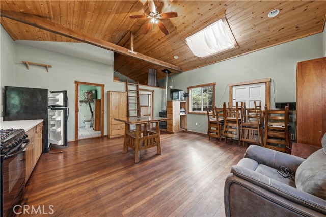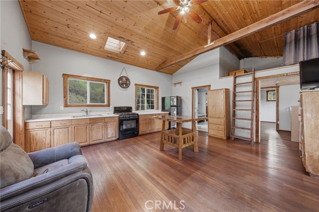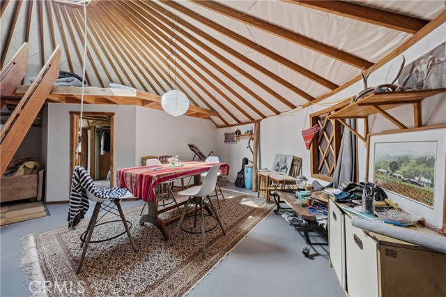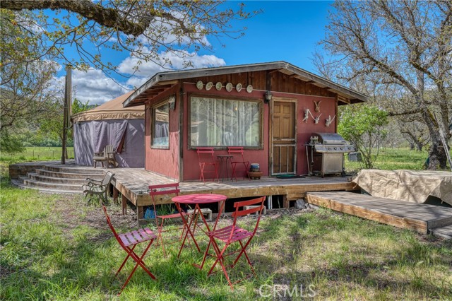 Private 20± acre Scotts Valley Retreat offering a rare multi-residence setup with lush green pastures, mature trees, and Scotts Valley Creek frontage featuring natural swimming holes. Nestled between two mountains, the 3bd/1bth cabin style home offers vaulted knotty pine ceilings, a loft, functional open floor plan kitchen/living room, a wraparound deck to take in the surrounding views. A separate 30’ yurt-style dwelling provides additional living space with an open concept layout, private bedroom area, a loft for additional sleeping space, kitchen, dining room and private deck, complemented by a detached bathhouse and sauna. The property also includes a fully equipped dairy processing facility featuring a commercial kitchen layout, stainless steel work surfaces, walk-in refrigeration, and dedicated cheese production area. Fenced and cross-fenced for agricultural use, the land is currently set up for a small scale goat dairy operation. Ideal for multi-generational living, income potential, or a private working farm with established infrastructure.