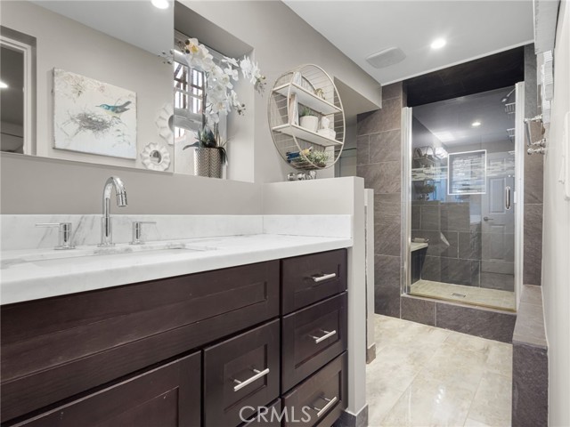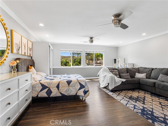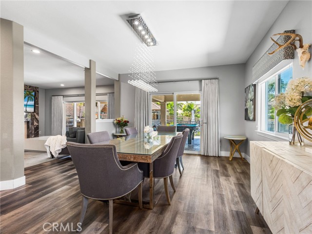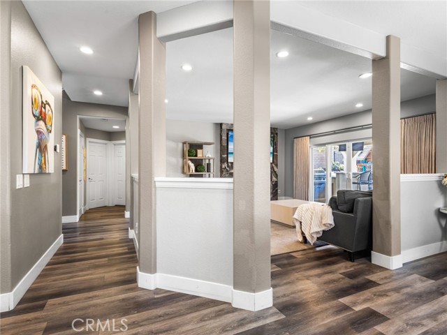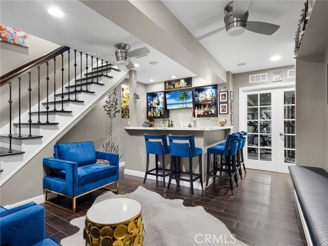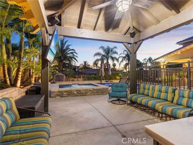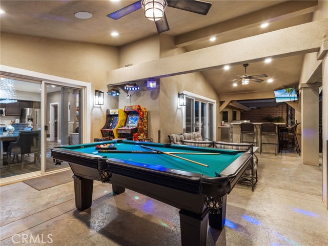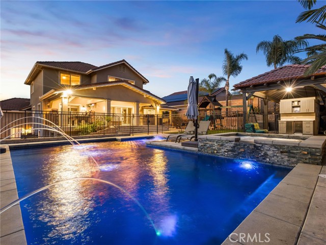 Welcome to this fully renovated Woodcrest estate—where luxury, smart living, and resort-style amenities come together in one exceptional property. Thoughtfully upgraded throughout, the home features quartz and marble finishes, custom lighting, fresh paint, and durable vinyl plank flooring. The main living space is anchored by a stunning stone fireplace, in-wall speakers, and a built-in entertainment setup designed for modern living. Step outside to your private resort. The expansive California Room with built-in BBQ, in-ceiling speakers, and firepit connection overlooks a solar-heated pool complete with Baja shelf, bubblers, and illuminated water features—surrounded by lush tropical landscaping. A fully equipped pool house with restroom, outdoor shower, and beverage station elevates the experience. Inside, enjoy a hidden speakeasy-style bar, in a ~930 sq ft basement offering a restroom, gym, guest room, office, and lounge space. Designed for both lifestyle and function, the property includes EV-ready garage space, room for up to 9 vehicles on driveway plus space for up to 4 RVs in the back, and extensive smart home integration with security, lighting, and climate control throughout. With mature fruit trees and fully automated irrigation, this property offers the ultimate blend of comfort, entertainment, and convenience. A true private resort—turn-key and unlike anything else in Woodcrest.