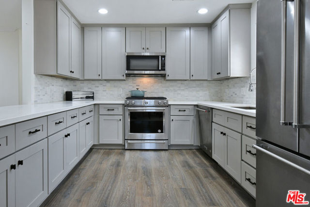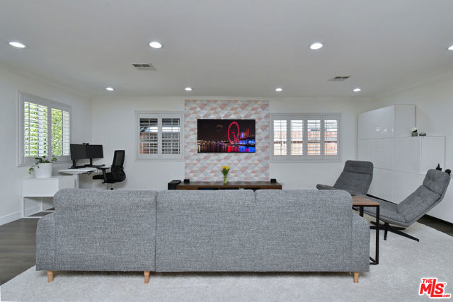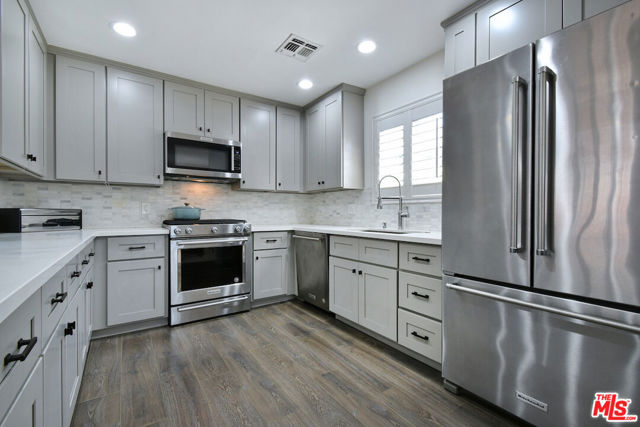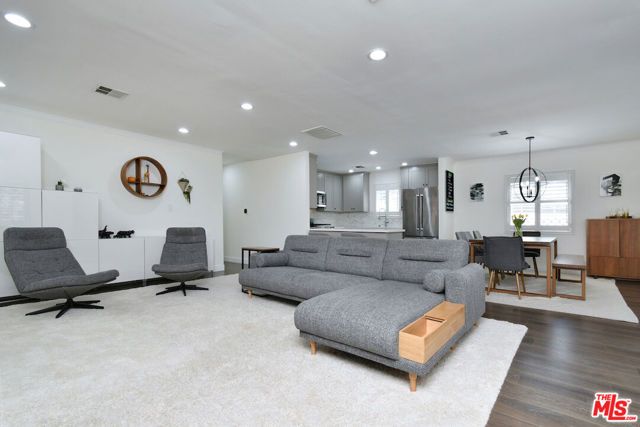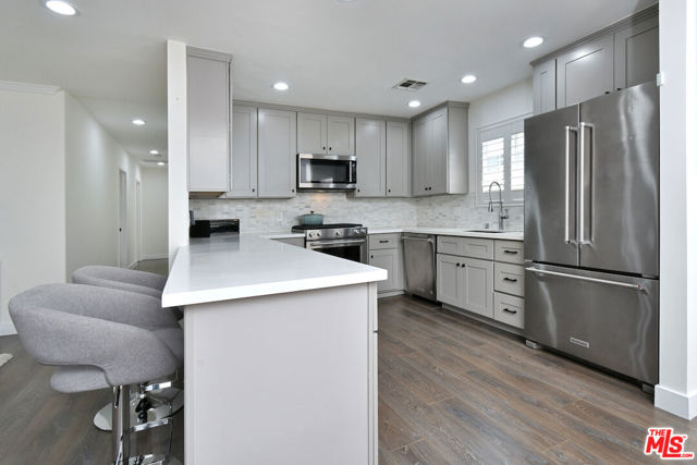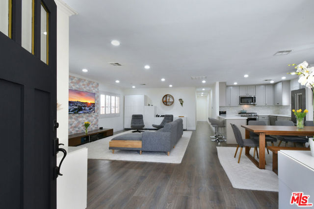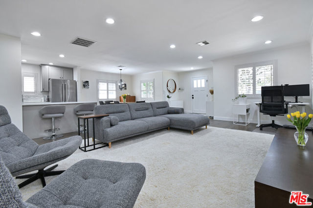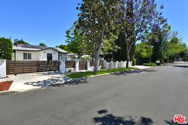 Gated and set back from the street, this single-story traditional home offers a light-filled, open floor plan with a comfortable flow for everyday living. The main living spaces are bright and inviting, with wide-plank flooring, recessed lighting, and multiple windows that bring in natural light. The remodeled kitchen features stainless steel appliances and a center island with bar seating, opening directly to the dining and living areas. The home has been fully updated and includes a newer roof and owned solar panels. A spacious primary bedroom includes an en suite bathroom. Outdoor areas are designed for both relaxation and entertaining, with a private backyard featuring a pool, spa, patio space, and a covered lounge area. A turnkey Sherman Oaks opportunity offering an ideal entry point into one of the Valley's most desirable neighborhoods, adjacent to Chandler Estates and close to parks, shopping, and dining.