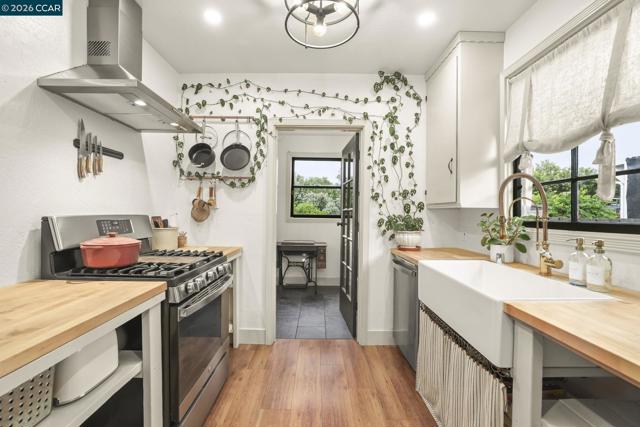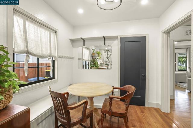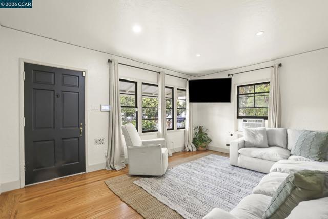 Charming 2-bedroom, 1-bath home nestled in the heart of Pittsburg! This adorable residence features beautiful hardwood floors, classic woodwork, and an updated kitchen complete with a cozy breakfast nook and gas stove. Enjoy the convenience of inside laundry and the versatility of a garage space previously used as a home office. Relax and unwind on the inviting front porch, or step into the lush backyard featuring a grassy play area, an abundance of mature flowers, and a gorgeous assortment of fruit trees—including apple, lemon, pomegranate, guava, peach, and orange—creating a vibrant and colorful landscape. The yard is fully fenced for added privacy. Situated on a corner lot with fresh exterior paint, this home is just minutes from downtown Pittsburg, local restaurants, the Marina, schools, and offers easy access to Pittsburg BART and Highway 4—making commuting a breeze.