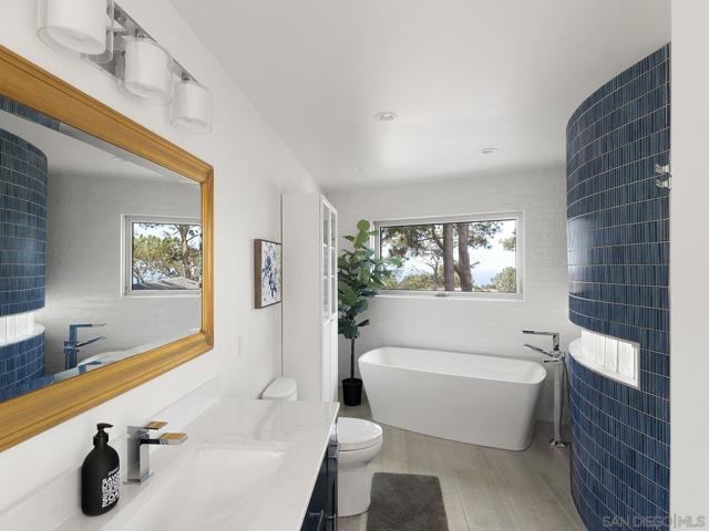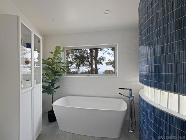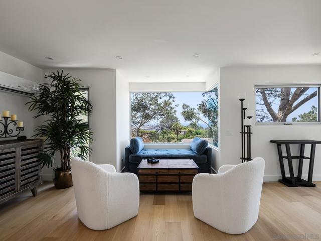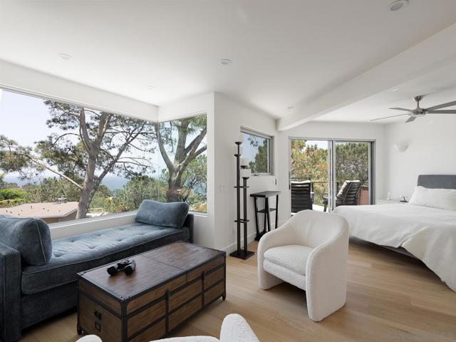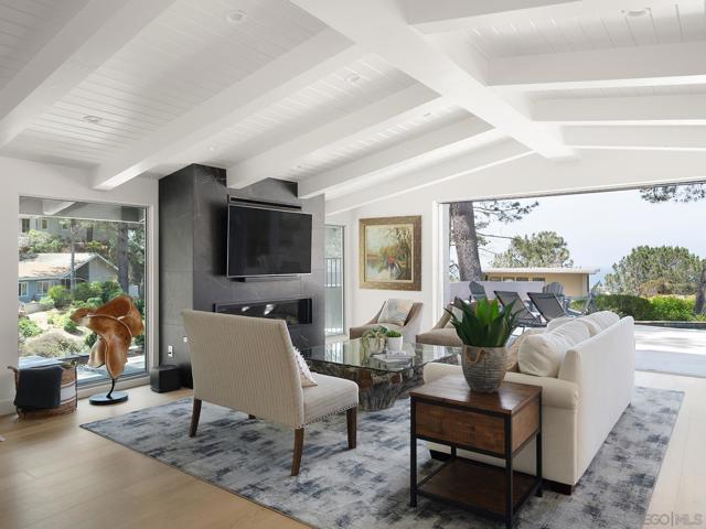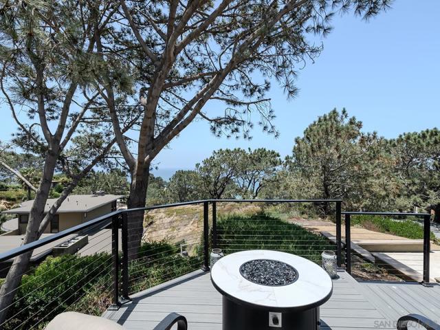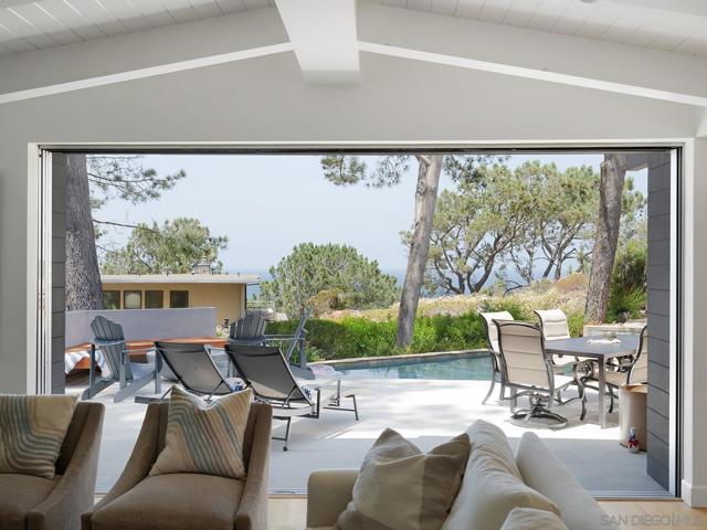 Enjoy the one-of-a-kind ocean and sunset views from this coastal retreat set among the bluffs and trees of Del Mar. This unparalleled 14,400 sf property will have you and your guests awe-inspired by the natural beauty of this location. Lodged into the sandstone bluffs and nestled below the towering Torrey Pines, this home has been completely reimagined to embrace the sweeping ocean views from every room in the house. Designed with modern sensibilities and indoor-outdoor living in mind, the home features an open floor plan with large skylights, flooding the interior living space with natural light. The multi-slide pocket door disappears to seamlessly open the interior to the west facing deck and salt water pool. Spend time with your family and friends sitting by the new fire pit or soaking in the spa while the rock waterfall runs down and the sun sets in the distance. Finish the evening in the courtyard tucked into the bluff and enjoy the warmth of the gas fireplace. Wake up every morning to the sound of crashing waves and white water views from the privacy of the primary suite perched atop the bluff. Take your own private elevator to the primary suite and relax in the spa-like bathroom with a soaking tub and large shower. Down the hall is a large walk-in closet with a coffee bar. Sip an early morning espresso from the primary suite deck with its own gas fire pit. This peaceful, private retreat is truly special.