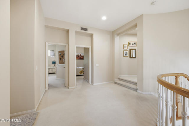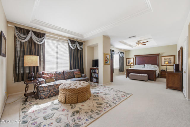 Set on a generous sized lot, in one of Thousand Oaks' most serene settings, 331 Briar Bluff Circle offers a rare blend of privacy & natural beauty, with panoramic views of the Conejo Valley. Located at the end of a cul-de-sac, this beautifully maintained 3,608 sq ft home offers 4 bathrooms and 5 bedrooms. The 5th bedroom, on the main floor, is currently an executive home office positioned next to a full bathroom and a closet establishing versatility as a guest room. Surrounded by scenic mountains and adjacent to miles of hiking & biking trails, the property is your own private retreat, designed for indoor-outdoor living. The well-maintained grounds have lush landscaping, flagstone pathways, garden lighting, and a stunning stacked stone pool and spa. There are multiple well designed entertainment spaces including a covered outdoor lounge/dining area, an elevated spa deck space with a waterfall and a cozy garden fire pit patio at the other end of the pool. The outdoor kitchen is fully equipped with a built-in grill, sink, refrigerator, extra storage, and bar-top seating--perfect for hosting year-round. Meandering pathways lead through the manicured side yards and a beautiful gazebo sits in the front yard offering a peaceful spot to view stunning sunsets. Located above the main residence, a flagstone staircase leads to a private, elevated area of the property, with endless buildable possibilities: a guest house for multigenerational living, an ADU for rental income, a sport court or practice field for recreation or any combination of the above, with access to the front driveway as well. This elevated area includes a large flat section, tiers for a possible vineyard or citrus grove, gravel pathways, irrigation and a garden patio, offering unobstructed views, perfect for taking in the morning sunrises or evening sunsets with friends and family. The home has been freshly painted with hardwood floors, soaring ceilings, and abundant natural light from the large dual paned windows. The formal living room opens to the formal dining area with picturesque front patio and backyard views. The gourmet kitchen has granite countertops, new custom tile backsplash, a large center island, upgraded cabinetry, pantry area, double ovens, microwave, gas cooktop, dishwasher, and trash compactor as well as butler's pantry with wine refrigerator. The open floorplan includes a separate family room with a gas/wood burning fireplace and additional dining area with French doors leading to the backyard. Upstairs, are four additional bedrooms, including the primary suite. Two bedrooms, one with a private balcony area, share a bathroom with dual vanity and separate shower area. The third bedroom has its own ensuite bathroom, perfect for guests. The expansive primary suite is a true sanctuary, complete with a sitting area overlooking the backyard, dual walk-in closets and an extra storage area. Relax in the spa-like atmosphere of the remodeled primary bathroom which includes a large soaking tub, dual quartz vanities and a separate oversized glass-enclosed shower with dual shower heads. Features & upgrades include dual zoned HVAC, solar panels for energy efficiency, a security system, battery backup garage system, ceiling fans, upgraded lighting, window frames,and crown molding. The laundry room has a quartz countertop, sink, and washer & dryer included with exterior access to the large side area, perfect for pets. With plenty of parking in the three car garage, as well as the oversized driveway, this home offers endless possibilities and captures the best of Thousand Oaks living.
