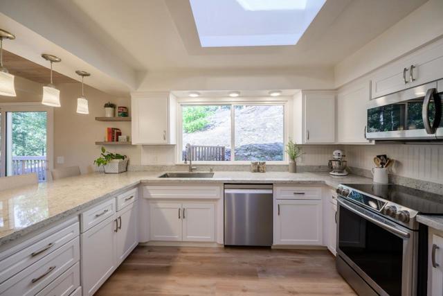 Welcome to this beautifully updated 4-bedroom, 3-bath home offering over 3,000 square feet of living space on a private 2-acre lot with stunning views. This home features new flooring throughout, a tastefully remodeled kitchen and bathrooms, and a well-designed floor plan that flows seamlessly. The kitchen includes granite countertops, stainless steel appliances, and a skylight that fills the space with natural light. Enjoy multiple expansive decks ideal for relaxing, entertaining, or taking in the surrounding scenery. The property offers ample parking with a circular driveway in addition to the attached 2-car garage. Whether youre enjoying the views from inside or out on the decks, this home delivers a peaceful setting with a strong indoor-outdoor connection. A rare combination of space, privacy, and modern updates this home is sure to impress.