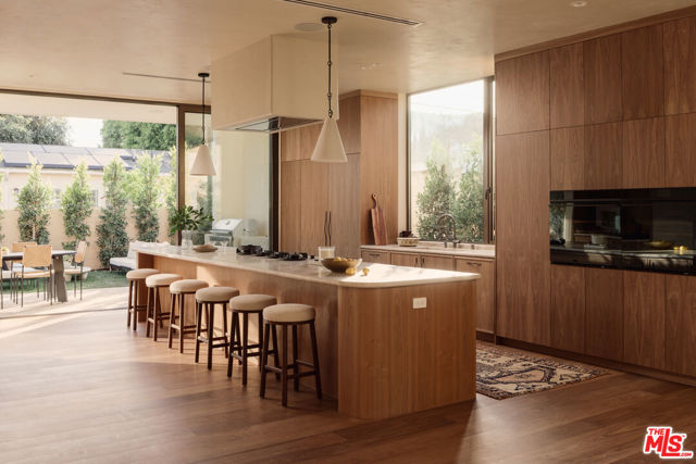 A landmark new construction arriving on one of Carlson Park's most coveted streets in Culver City. Conceived from the ground up with an uncompromising architectural vision, this 4,000-square-foot residence transforms daily living into something extraordinary, moments from downtown Culver City and its celebrated restaurants, shops, and cultural energy. Thoughtfully positioned on a 6,762-square-foot lot, the home embraces a seamless indoor-outdoor lifestyle with expansive walls of glass, exceptional natural light, and a fluid open floor plan designed for both intimate living and elevated entertaining. The chef's kitchen is a study in restraint and refinement, anchored by a monumental island with generous storage, custom walnut cabinetry, integrated appliances, and an effortless connection to the living and dining spaces, featuring a dedicated wet bar adorned in dramatic book-matched silver wind travertine. Every finish is consistent with the home's natural warmth and earthy texture. The home offers four en suite bedrooms, each thoughtfully designed for privacy and comfort, along with an upstairs lounge that provides additional living space.The primary suite unfolds with generous scale, soft light, a spacious walk-in closet, and a spa-like bath centered around a custom fusion marble-paneled shower and soaking tub. Sliding doors open to an oversized patio, completing its serene purpose. The thoughtfully executed backyard is designed as a private, resort-like escape, with curated landscaping, sculptural built-in seating with a centered fire pit, a separate lounge area, and a built-in BBQ and dining terrace , completing a true haven. A rare opportunity to acquire a brand-new designer residence where architecture, materiality, and location converge in one of Culver City's most desirable enclaves.