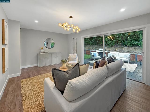 A tranquil and restful retreat tucked away in the Walnut Hills Country Club Estates neighborhood of Lafayette. This home has been tastefully updated inside and out and lovingly maintained over the years. The open concept floorplan seamlessly flows to the front and back yards- perfect for entertaining. Some of the amenities include fresh new designer paint throughout, newer luxury vinyl plank flooring, updated kitchen and bathrooms, brand new roof, solar panels, Tesla charger and battery bank, new wiring, plumbing, insulation and low maintenance landscaping. Enjoy quite nights and peaceful mornings in this ideal location; a short walk from Briones Open Space as well as the canal trail, near top rated schools, fun parks, shopping, dining as so much more!
