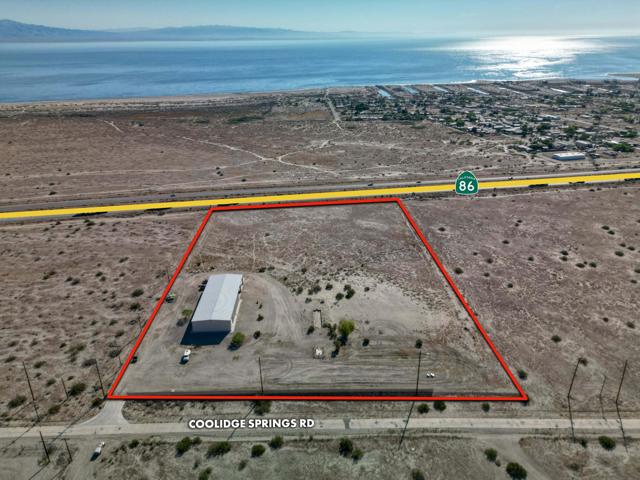 Approx. 5,200 SF warehouse/shop building on 9.38 acres. Fully fenced. Warehouse includes four 10'x12' roll-up doors and approx. 3,600 SF attached shade structure. Convenient location with frontage on Expressway 86. 22 miles to Coachella, 60 miles to El Centro, 85 miles to Mexico border. Great for owner-user or investment purposes. Sale will include a water truck, and CASE skip loader tractor. Call (760) 360-8200 for more details or set up appointment to see the property. Appointment only. Beware of dogs.