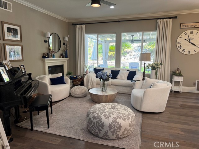 AVAILABLE FOR SHORT TERM LEASE. FULLY FURNISHD, Elegant and Warm Retreat in Murrieta, CA Guard-Gated Community. This fully furnished, single-story approximately 2,500 sq. ft. home is perfectly suited for shared or individual traveling medical professionals, executives, insurance rental, relocation, or families seeking comfort, privacy, and proximity to major medical centers, providing all the comforts of home. Located in a secure 24-hour guard-gated community, the home is just minutes from Loma Linda, Inland Valley, and Rancho Springs Hospitals, with easy freeway access to the 215 and 15. The home features three bedrooms; a spacious primary suite featuring a California King bed, a dedicated desk for remote work, and a cozy lounge chair for relaxing. Two additional bedrooms each offer a queen-size bed. Every bedroom is equipped with a SmartTV and Apple TV, and ceiling fans are located in all rooms for year-round comfort. The well-appointed kitchen is a true highlight, featuring a large island with seating for four, a dining table for six, a wine and beverage cooler, and a pantry with pull-out shelving. A walk-in storage pantry includes a full assortment of small appliances such as a toaster, toaster oven, crock pot, air fryer, Instant Pot, blender, and hand mixer—everything you need to feel right at home. After long shifts, relax in the family room designed for relaxation and entertainment, boasting an impressive 85” Smart TV and an open, inviting layout. Or, step outside to enjoy the low-maintenance, beautifully landscaped back yard featuring a full patio cover with ceiling fans and heaters, comfortable outdoor furniture, a fire pit, outdoor TV, and a dining table— perfect for enjoying Southern California evenings. This home offers a quiet, secure, and welcoming environment—providing a true home-away-from-home experience.
