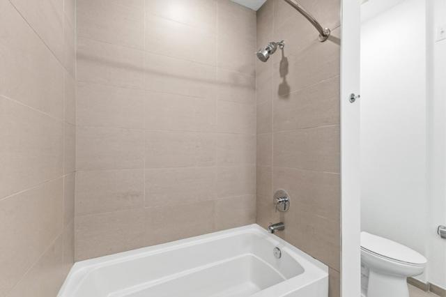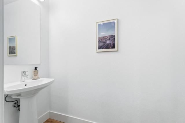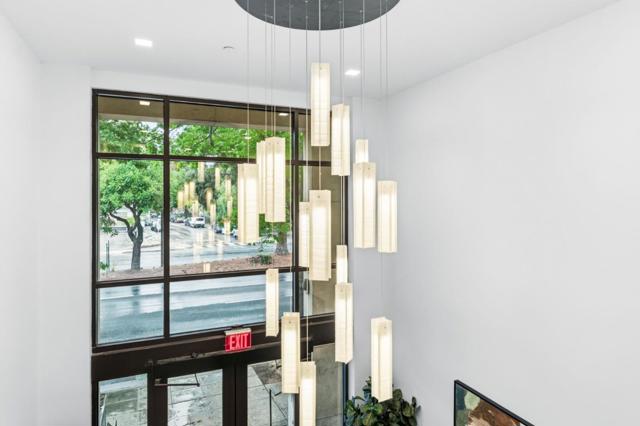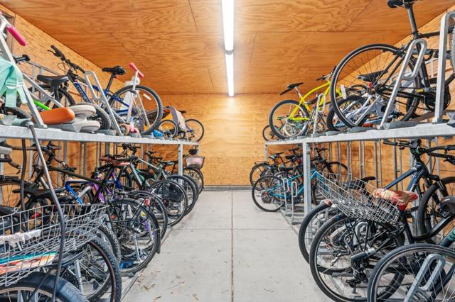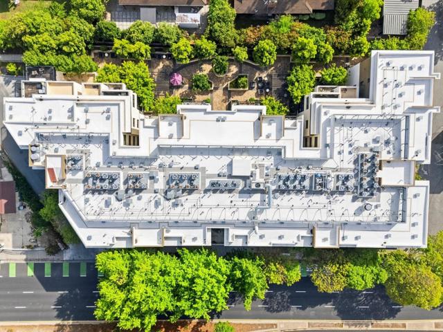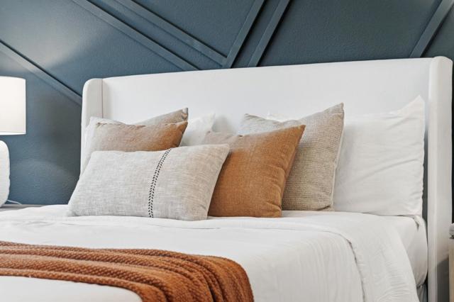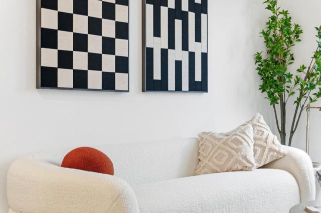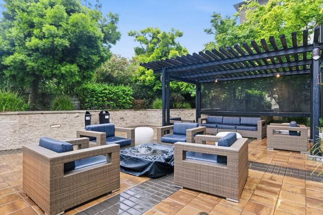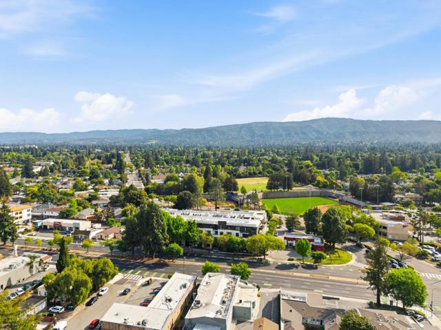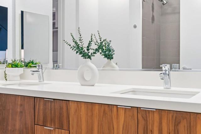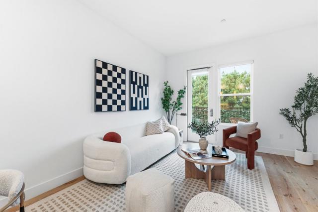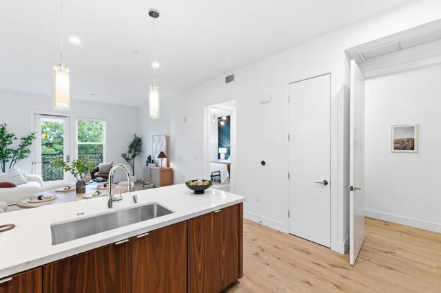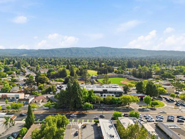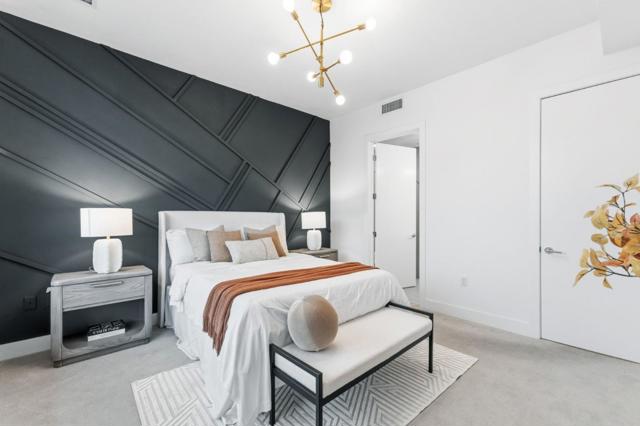 One of the brightest residences in a modern luxury building, ideally located in the heart of Downtown Mountain View, with water included in HOA dues. This stylish home blends contemporary design with warm, upscale finishes, just moments from everything Silicon Valley has to offer. The open-concept layout features a sleek chefs kitchen with stainless steel appliances, rich walnut-toned cabinetry, tiled backsplash, and elegant quartz countertops. The light-filled living and dining area showcases wide-plank hardwood flooring, recessed lighting, and large windows, with direct access to a private terrace for seamless indoor-outdoor living. The spacious bedroom suite offers a spa-inspired en-suite bath and a generous walk-in closet with custom built-ins. A convenient half bath serves guests. Additional highlights include in-unit washer/dryer, abundant storage with two oversized storage spaces, and one assigned parking space in a secured underground garage. Enjoy boutique community amenities including landscaped grounds, BBQ area, fire pit, lounge seating, bike storage, and a dog park. Just steps to downtown shops, dining, transit, parks, and Rose Market.