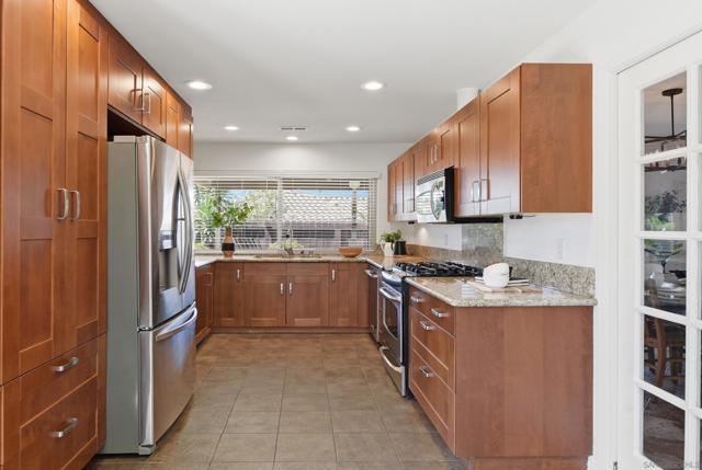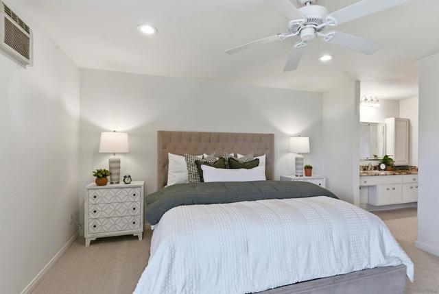 Welcome to 12650 Opimo Drive, a beautifully updated single-story home on a desirable corner lot in the sought-after 55+ community of Seven Oaks in Rancho Bernardo. Featuring a popular, open and functional floorplan, this move-in ready residence offers both comfort and style. The upgraded kitchen boasts granite countertops, rich wood cabinetry with ample storage, stainless steel appliances, and custom tile accents, flowing seamlessly into the bright living and dining areas—perfect for everyday living and entertaining. The spacious primary bedroom is filled with natural light from oversized windows, while the generous second bedroom offers flexibility for guests, an office, or hobbies. Step outside to enjoy a private side yard and a large covered patio, ideal for relaxing or hosting gatherings. The low-maintenance yard provides just the right amount of outdoor space, complete with an above-ground spa for unwinding under the stars. A two-car garage adds convenience. As part of the vibrant Seven Oaks community, residents enjoy access to an array of amenities including a pool, spa, pickleball courts, fitness center, and a wide variety of social activities designed to keep you active and engaged. Conveniently located near shopping, golf courses, tennis, dining, and freeway access, this home offers the perfect blend of tranquility and accessibility. Discover the lifestyle you’ve been waiting for—comfort, community, and effortless Southern California living await at 12650 Opimo Drive!