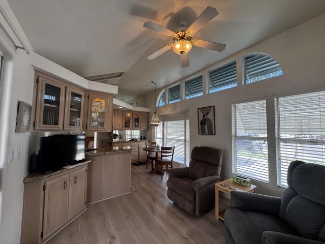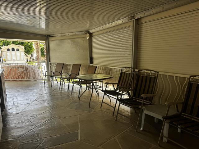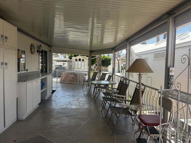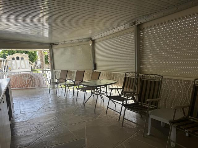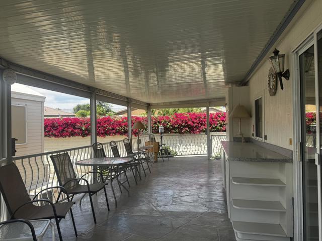 Welcome to this charming 1997 Silvercrest park model, ideally situated along the semi-secluded north wall where peace and tranquility abound. This prime location offers a quiet retreat while still being just moments away from unlimited golf, entertainment, and all the vibrant amenities the community has to offer.The home shines with an abundance of natural light, highlighted by beautiful windows and stylish window awnings that add both character and functionality. Thoughtfully enhanced with upgrades and unique additions, this park model offers comfort, convenience, and a touch of individuality you won't want to miss.Located within the highly sought-after Rancho Casa Blanca community, this home truly delivers on lifestyle. Residents enjoy free golf year-round, a fully equipped fitness center, pickleball and tennis courts, and multiple pools and spas perfect for relaxing. The community also features a bocce ball court, billiard room, and horseshoe pits, creating endless opportunities for recreation and socializing.With two expansive clubhouses and four satellite buildings hosting over 60 clubs and activities, there's always something happening. For added peace of mind, the community is guard-gated with regular security patrols. Whether you're looking to stay active or simply unwind, Rancho Casa Blanca offers the perfect balance--and with a golf cart, it's easy to explore and enjoy everything this exceptional community has to offer.