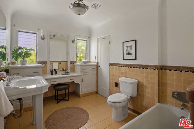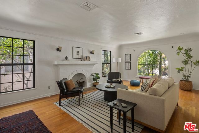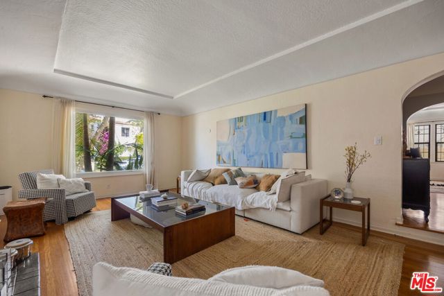 In prime Beverly Grove, this resplendent 1928 Spanish duplex dazzles with beauty and grandeur, delivering endless space where each unit lives like a large single family home - Upstairs unit delivered VACANT. Sheltered from the street by a lush front yard, the stunning residences conjure up Old Hollywood elegance, balanced by elevated modern materials. Exquisite period details include arched doorways and windows, hardwood floors, and vintage tile work. The living spaces are capacious and filled with natural light, perfect for repose or socializing. The grand kitchens feature full walls of cabinetry, generous counters, eat-in bars and open to the breakfast room and formal dining - the upstairs unit has a large covered patio and the downstairs a private front yard. Three bedrooms included for each unit featuring large closets and five baths. The flat yard has a large grassy area to lounge, play, and dine alfresco. Amenities include central AC/heat, private laundry rooms and ample storage. Separately metered for gas and electric. Two 2 car garages and plenty of off street parking. You're moments from KazuNori, The Little Door, Magnolia Bakery, Good Intentions, The Grove, LACMA and everything Beverly Grove has to offer.