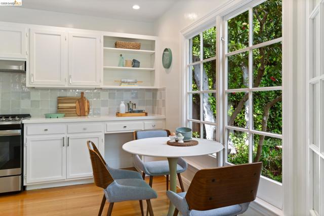 This beautifully updated 2+Bedroom, 2.5 Bath home is an elegant, stately storybook residence with a classic Tudor feel, ideally situated on a coveted, idyllic street in Berkeley’s highly desirable Elmwood neighborhood. Thoughtfully maintained throughout, the home features hardwood floors, an inviting eat-in kitchen with stainless steel appliances, and a cozy gas fireplace. Modern comforts include air conditioning, along with updated electrical and plumbing systems, offering both style and peace of mind. French doors open to a private, beautifully fenced backyard—perfect for relaxing or entertaining—while the spacious primary suite provides a serene retreat. Located just moments from BART and the shops and restaurants along College Avenue, this home boasts a Walk Score of 89, making it as convenient as it is captivating. BESO: 1