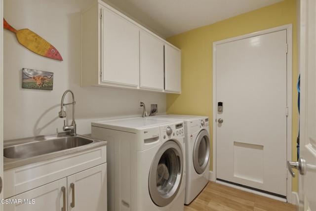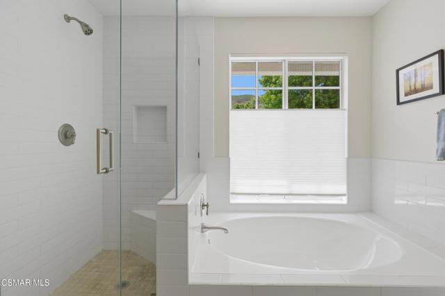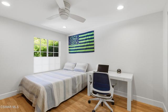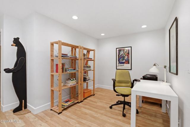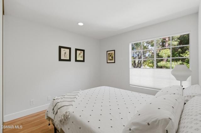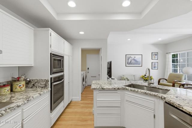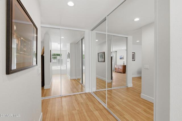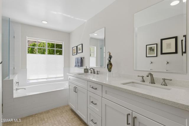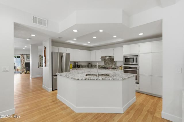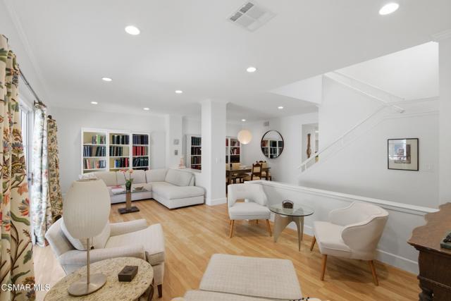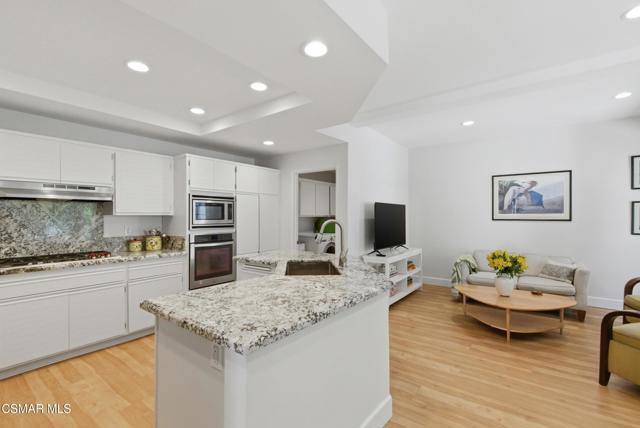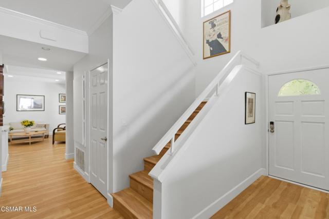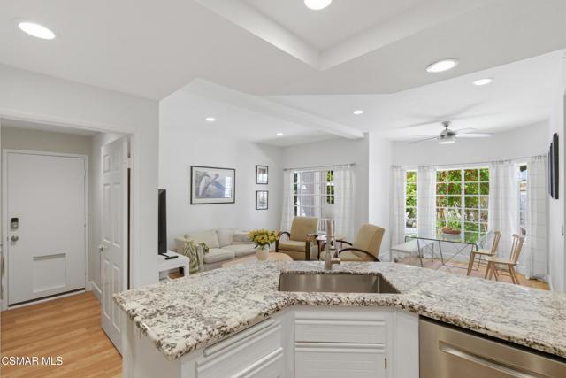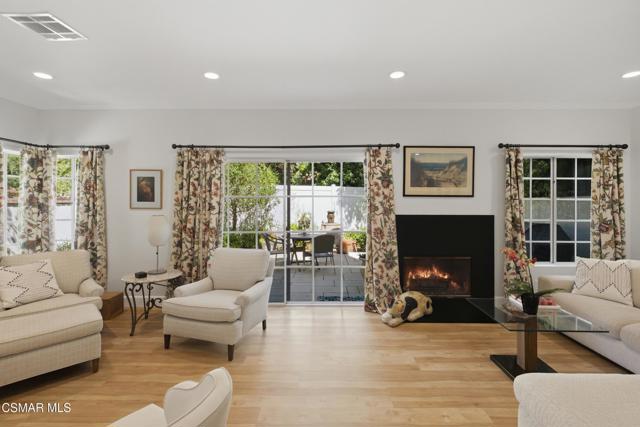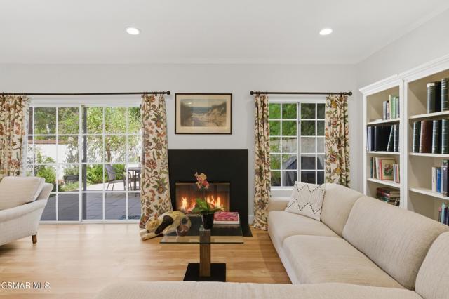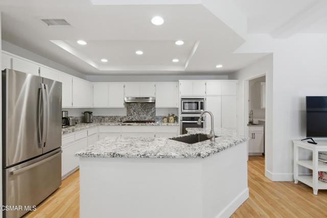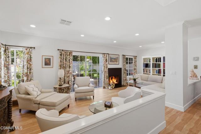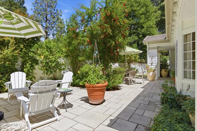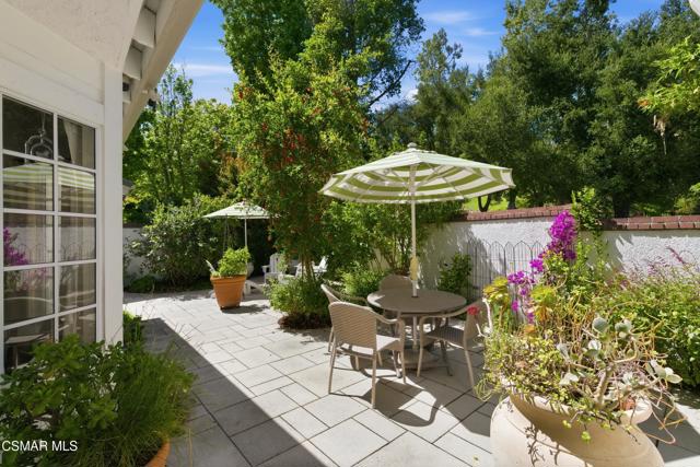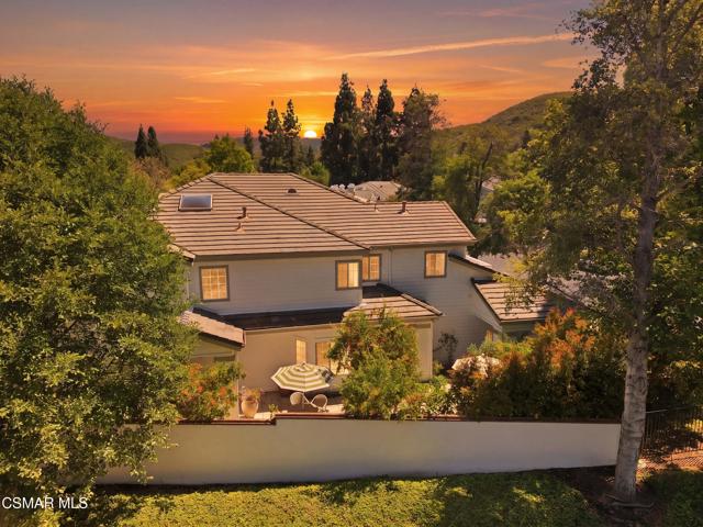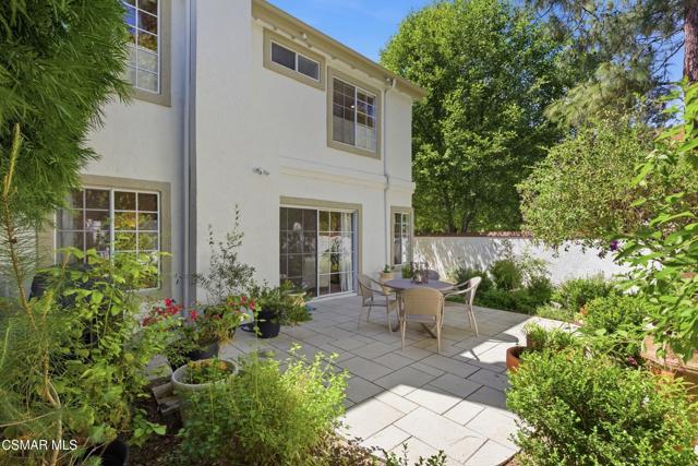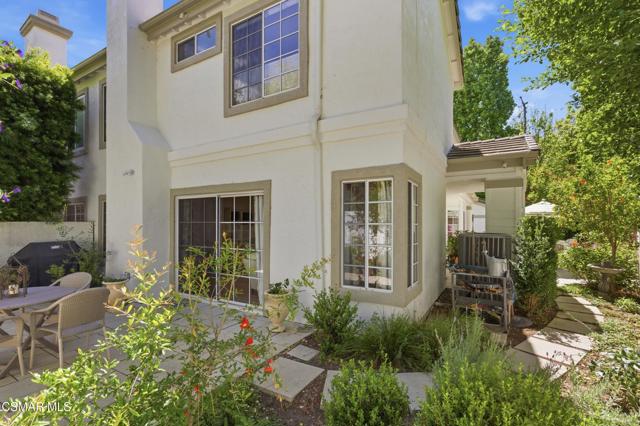Fantastic Braemar townhome in North Ranch on a premier corner lot at the end of a peaceful cul de sac. This beautifully maintained home offers the perfect blend of comfort, style and location. You'll appreciate the private gated entry leading into the professionally remodeled wrap-around patio with custom pavers, two fountains, fruit trees and attractive drought-tolerant landscaping. The interior offers a desirable layout that is both comfortable and functional, with 3 bedrooms and a separate loft area ideal for an office, playroom or upstairs den. Downstairs is a spacious living room with fireplace opening to the backyard oasis, along with a separate formal dining room. The light and bright kitchen opens seamlessly to a breakfast area and family room and features marble/granite countertops, a newer Wolf cooktop and newer stainless steel refrigerator. Upstairs is where you'll find all the bedrooms, including a large primary suite with sitting area and front-facing balcony that has newly-installed waterproof flooring/decking. The suite also offers custom blinds, an oversized walk-in closet with custom floor to ceiling mirror doors and closet organizers, and a beautifully remodeled primary bathroom. The other two bedrooms also have custom blinds and share a full hall bathroom. Additional features include newer low-maintenance luxury vinyl plank flooring, low voltage garden lights with timers, freshly painted exterior and much more. The home exudes true pride of ownership and move-in ready appeal. The Braemar townhome development offers a community pool/spa, nearby park and playground and is in close proximity to great hiking, shopping and popular restaurants, with easy freeway access, all within the award-winning Conejo Valley Unified School District.