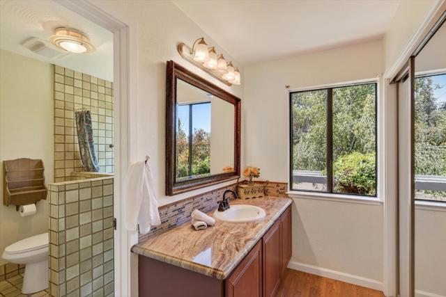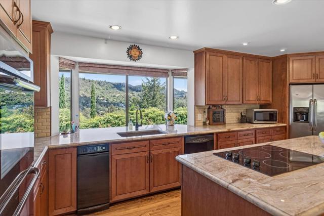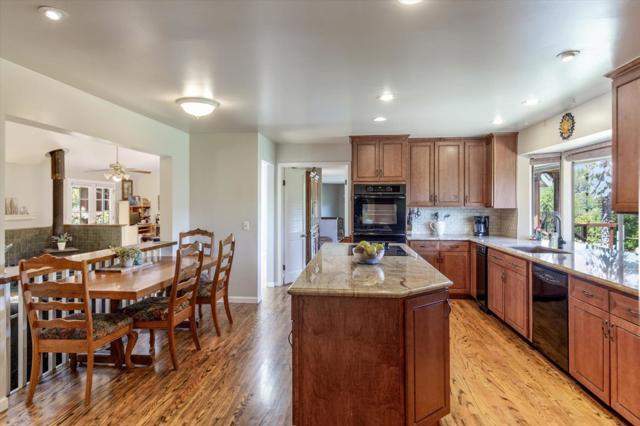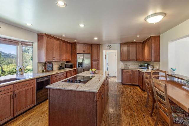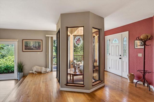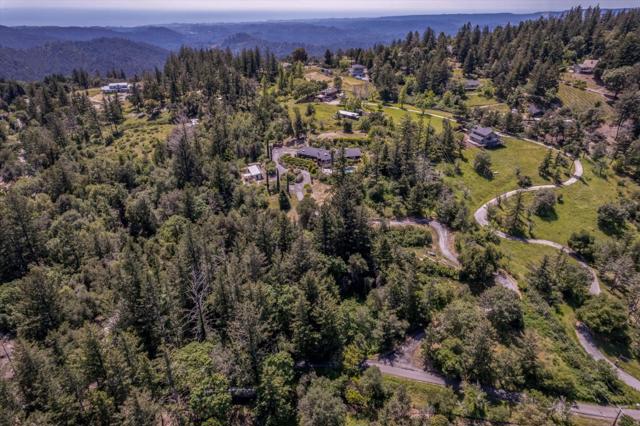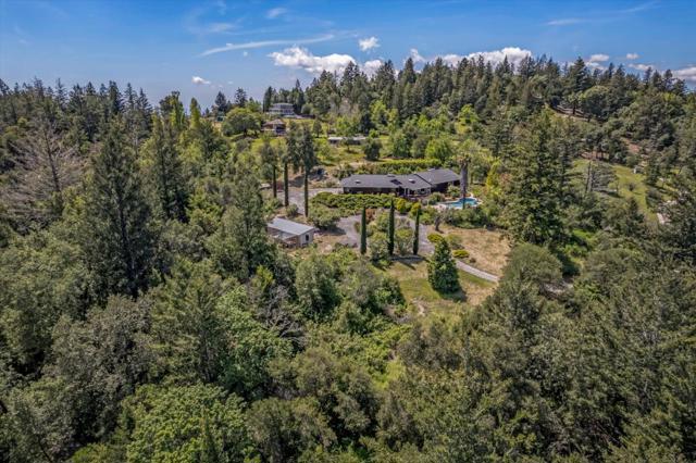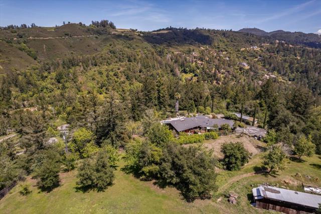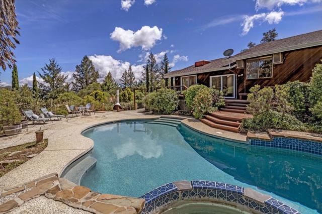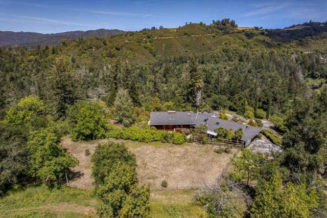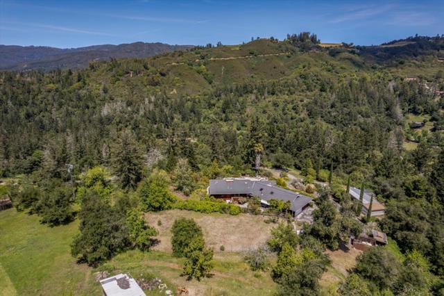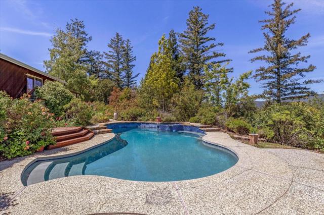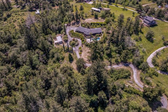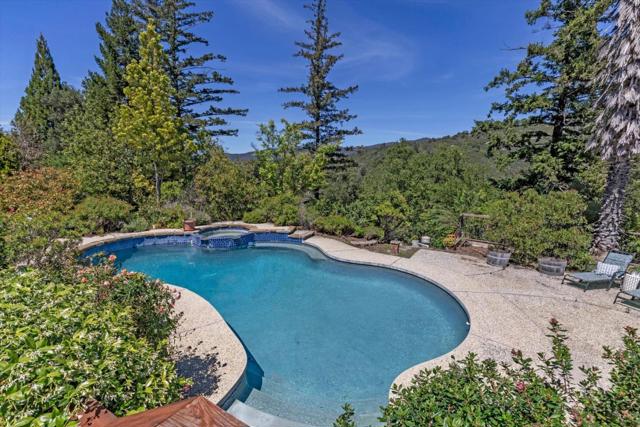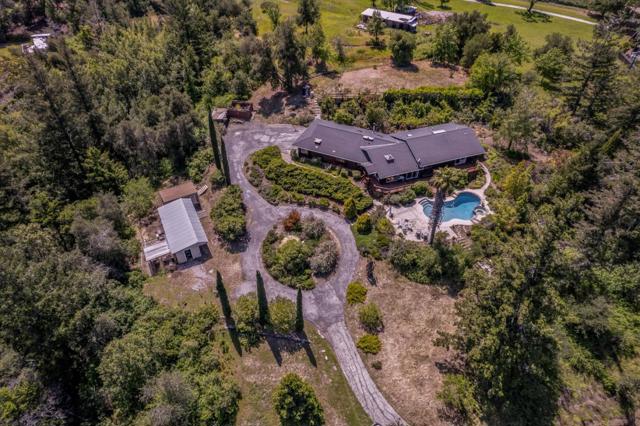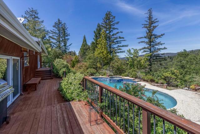 Your dream property with stunning views await in this amazing 5+ acre property. Fantastic single level home in easy location. 4 Bedrooms 3.5 bathrooms 3178 sf single level home. Plenty of space throughout with updated kitchen features stunning quartz counters, plentiful cabinetry, newer electric range double oven refrigerator, lovely copper sink and view picture window, opens to spacious family room, pool table area and wet bar. Eat in kitchen or private dining room which opens to living room and atrium at entry. Spacious primary suite and 3 other bedrooms with jack and jill updated bathroom between two bedrooms. Separate laundry room, hardwood floors. New sliding glass doors. Central heat and air, ceiling fans and amazing light form windows and skylights. Lovely garden areas with beautiful rose and grape vines and swimming pool with spa, deck and patio areas. Private circular driveway, plenty of room for vehicles. Horse stalls and riding area above house. Great central location a few minutes from Summit store above the radonich ranch. Easy drive to 17 and Los Gatos, 15 minutes to Capitola. Private well. Los Gatos Schools: Loma Prieta, CT English, Los Gatos High.