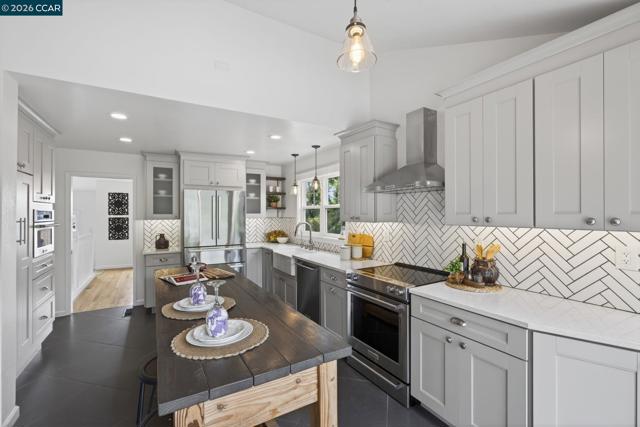 Open House Sunday 4/26 1-4 pm.A rare hillside retreat bordering Lime Ridge Open Space, this view-filled Concord residence pairs refined luxury with exceptional privacy, & breathtaking panoramic vistas.Set on an expensive .40acre lot ,this 3 bed 2.bath plus two half baths home offers 2,243 sq ft of sophisticated living space .Additional highlights include owned solar , EV charger , RV / boat parking ,& workshop /storage area .Inside soaring vaulted ceilings ,rich hardwood floors & abundant natural light create an elevated yet welcoming atmosphere.The primary suite features a walk in dressing room ,cozy fireplace & french doors that open to expansive decks creating seamless indoor -out door living.This home shines with multiple view decks ,lush plants offering a rear sense of tranquility while remaining conveniently close to trails ,shopping, dining,& commuter access. Come see this premier Lime Ridge location that perfectly blends luxury, effortless entertaining & nature. Views: Carquinez, Downtown