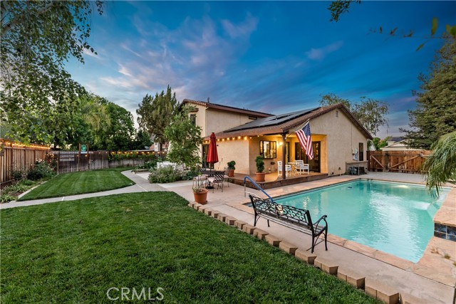 Welcome to this beautifully maintained home in the heart of Los Banos, offering a perfect blend of comfort, functionality, and everyday convenience. Situated on a generously sized lot, this residence features a thoughtfully designed floor plan with abundant natural light and inviting living spaces throughout. The spacious living area flows seamlessly into the dining space and kitchen, creating an ideal setting for both daily living and entertaining. The kitchen is well-appointed with ample cabinetry, generous counter space, and a layout designed for efficiency and ease. Each bedroom offers comfortable proportions, while the primary suite provides a private retreat with its own bathroom and relaxing atmosphere. Step outside to your own private oasis—a sparkling pool takes center stage in the backyard, perfect for cooling off on warm Central Valley afternoons or hosting unforgettable gatherings. With no rear neighbors in close proximity, you’ll enjoy a rare sense of seclusion and tranquility. And when you’re ready to explore, a paved walking trail is just steps away, offering a convenient escape for morning strolls or evening walks without ever getting in your car.