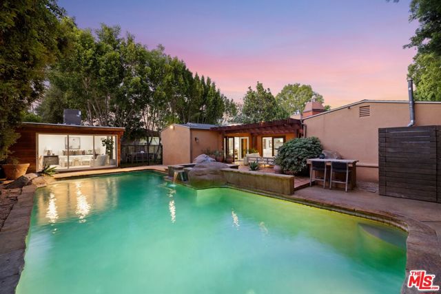 Located on a quiet residential street, this beautifully designed, well-proportioned traditional home with a contemporary flair offers space, flexibility, and effortless indoor-outdoor living. Featuring approximately 2,917 square feet of living space on a generous 9,451 square foot lot, the residence is ideal for both everyday comfort and entertaining. The thoughtfully arranged floor plan includes four spacious bedrooms with large closets, providing ample room for study, relaxation, and play, along with four well-appointed bathrooms. The home also features a formal dining room, a sunny breakfast room, and a large family room that opens seamlessly to a covered rear patio. Step outside to a true backyard retreat, complete with a fireplace, pool, spa, and plenty of space for gathering or unwinding in privacy. An added bonus is a separate air-conditioned flex space with a half bathroom, perfect for a home office, studio, or guest area. Enhancing the home's versatility are two primary suites, each offering generous closet space, en-suite bathrooms, and glass doors leading to the secluded backyard ideal for multi-generational living or guest accommodations. Set on a sizable lot in the highly desirable, award-winning Colfax Charter Elementary School District, this property combines location, layout, and lifestyle into one exceptional offering.