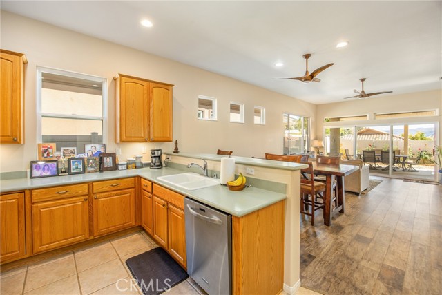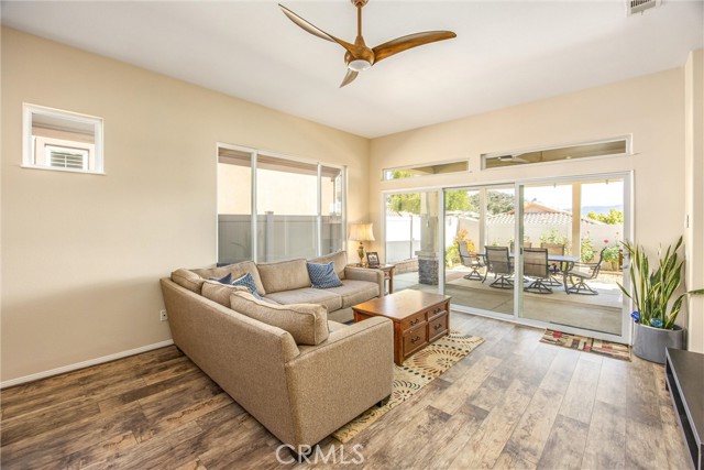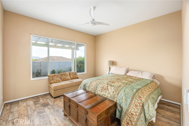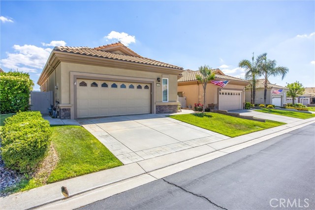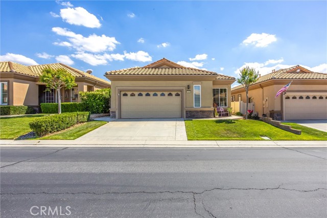 Open and Bright "PAVE" in Sun Lakes Country Club....55+ Community......NO MELLO ROOS....2 Bedrooms, Den or Office...VIEWs South of Hills and Mountain.....NEWER Flooring and Paint thru-out....Stainless Kitchen Appliances...pull-out Drawers....Separate Laundry with Sink.....Fans thru-out.....Private Patio with Alumawood Cover....Low Maintenance yard....Garage has Storage and Space for Golf Cart.....2-18 Holde Golf Courses, Two Restaurants, Bar and Lounge, Tennis and Pickle Ball Courts, Pools, one Indoors, Fitness Centers, Many Activities, RV Parking.....Located close to Casinos, Cabazon And Excellent Medical Facilities....