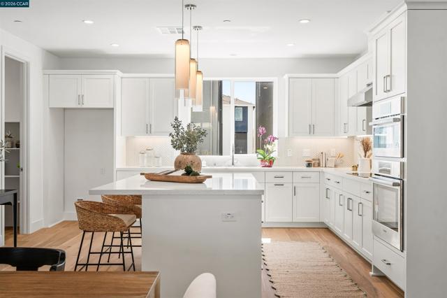 Incredible Incentives Available — $15,000 Towards Closing Costs! Experience refined, move-in ready living in this beautifully upgraded new construction home by award-winning SummerHill Homes, located in the highly sought-after City Village community. This stunning three-story row home showcases over $67,000 in thoughtfully selected upgrades, blending modern architecture with elevated designer finishes throughout. The open-concept main level is designed for both everyday living and entertaining, featuring expansive living and dining spaces accented by wide-plank hardwood flooring in a warm Vintage Wicker tone. The chef’s kitchen is a true centerpiece, appointed with premium Bosch 800 Series stainless steel appliances, including an induction cooktop, convection oven, speed microwave, and sleek stainless hood. White shaker cabinetry, polished nickel hardware, quartz slab countertops, and a full-height vertical herringbone mosaic backsplash create a timeless yet sophisticated design. Every detail has been carefully considered, from recessed LED lighting and under-cabinet illumination to CAT6 structured wiring and security pre-wiring. The soft Snowbound interior palette and smooth panel doors enhance the home’s bright, airy ambiance. Retreat to the spacious primary suite featuring upgraded Piedrafina surfaces, polished chrome fixtures, and a beautifully framed shower enclosure. Secondary bathrooms continue the elevated aesthetic with coordinated tile flooring and quality Kohler fixtures. Plush Anderson Tuftex carpeting adds comfort in select living areas. Located in the vibrant City Village community, residents enjoy close proximity to shopping, dining, top-rated schools, and convenient freeway access. This is a rare opportunity to own a turnkey, designer-quality home with exceptional incentives in one of the area’s most desirable communities.