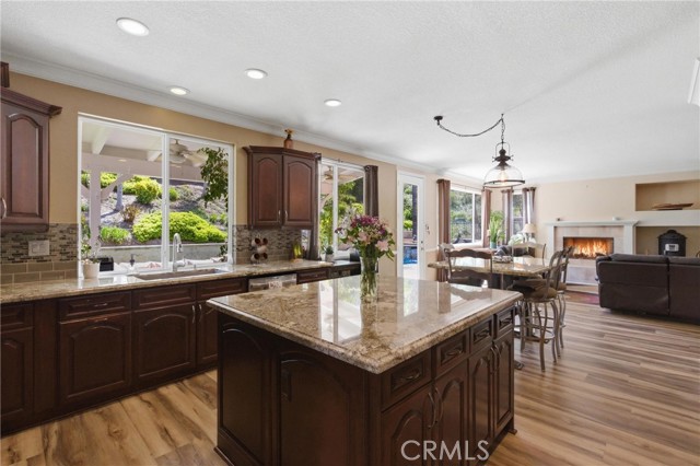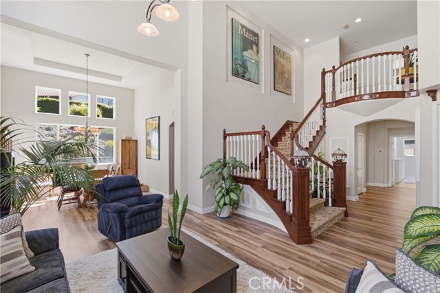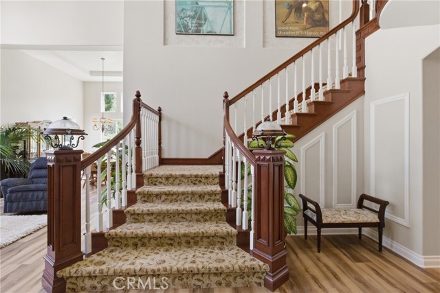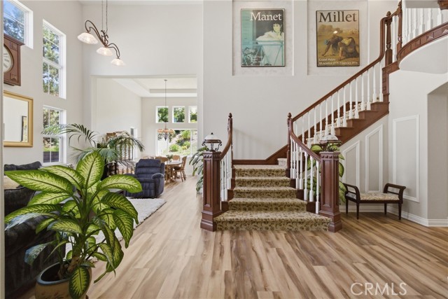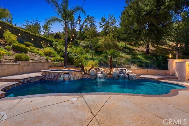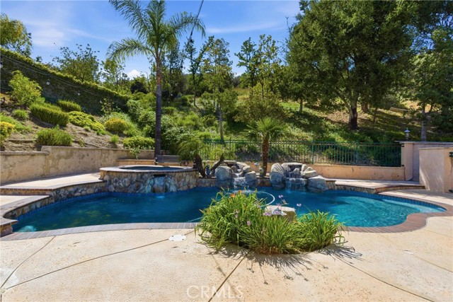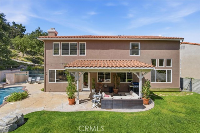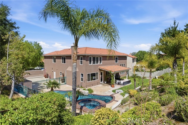 Welcome home to this beautifully upgraded residence located within the gated Enclave community of Stevenson Ranch. This five-bedroom, three-bath home offers impressive scale, thoughtful updates throughout, and over an acre of land, creating a true sense of space and privacy. From the moment you step inside, you are greeted by soaring ceilings, a custom-built staircase, an expansive sitting room, and a formal dining area filled with natural light from an abundance of windows. The chef’s kitchen has been tastefully updated with granite countertops, a large center island, soft-close custom cabinetry, newer appliances, and a newly added walk-in pantry with ample storage, all seamlessly connecting to the cozy family room where a fireplace and backyard views create the perfect everyday living space. Updated luxury vinyl flooring runs throughout most of the downstairs, enhancing the home’s modern and cohesive feel. A downstairs office can easily be converted into a sixth bedroom, ideal for multi-generational living, guest space, or a private work-from-home setup. The laundry room is also conveniently located on the main level. Upstairs, you will find four generously sized bedrooms and a recently updated shared bathroom. The primary suite is a true retreat, featuring a spacious layout, tray ceiling, custom plantation shutters, two walk-in closets, and a beautifully updated bathroom with dual sinks, custom cabinetry, a walk-in shower, and a separate soaking tub. Step outside to your private backyard oasis, complete with a saltwater pool and spa featuring dual pumps, a newer heater, and a variable speed system designed for efficiency and year-round enjoyment. The property also offers private RV access with sewer hookup, accommodating vehicles up to approximately 39 feet, an incredibly rare feature in this community. Additional highlights include surround sound speakers inside and out, dual-pane windows, recently replaced window screens, a newer dual HVAC system, fresh interior and exterior paint, and rain gutters. The home also features a traditional two-car garage along with a separate single-car garage. With a low HOA that includes maintenance of the well-kept hillside portion of the property and a prime location near shopping, dining, and convenient freeway access, this is a rare opportunity to own a highly upgraded home in one of Stevenson Ranch’s most desirable gated communities.