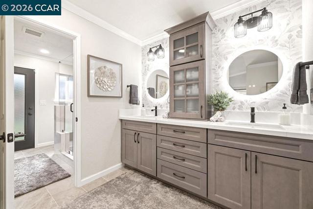 TWILIGHT TOUR 4/24, 5PM-7PM. OPEN 4/25, 1PM-5PM & 4/26, 1PM-4PM! Tucked away on a quiet court in San Ramon’s premier Country View community, this expanded single-story home perfectly balances classic character with high-end modern updates. Inside, you’re greeted by beautiful wood beam ceilings and a light-filled, neutral palette. The heart of the home is the updated kitchen, which flows seamlessly into an oversized family room—ideal for everyday living and hosting. The primary suite is a true standout, featuring a completely renovated, gorgeous bathroom with custom cabinetry, new flooring, and a stunningly expanded walk-in shower. With 4 bedrooms, 2.5 baths, and over 2,600 sq. ft. of living space, there is room for everyone. Set on a private, nearly 10,000 sq. ft. lot with new windows throughout, the home is as quiet as it is beautiful. Enjoy award-winning schools and quick freeway access without the noise. A rare find in a top-tier neighborhood—this one is truly a must-see.